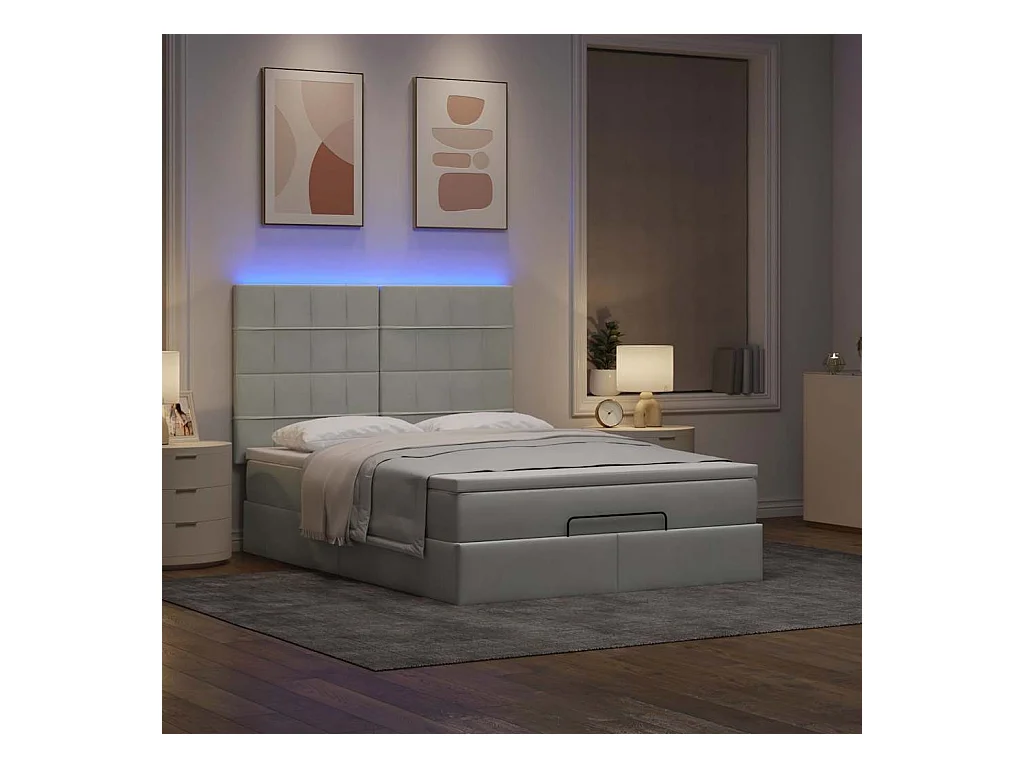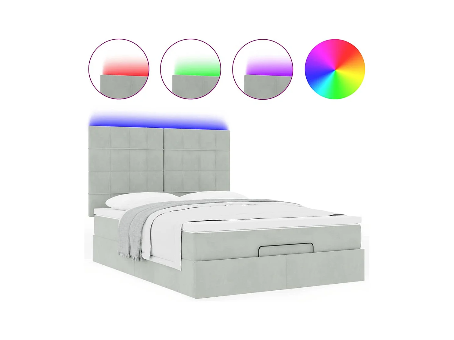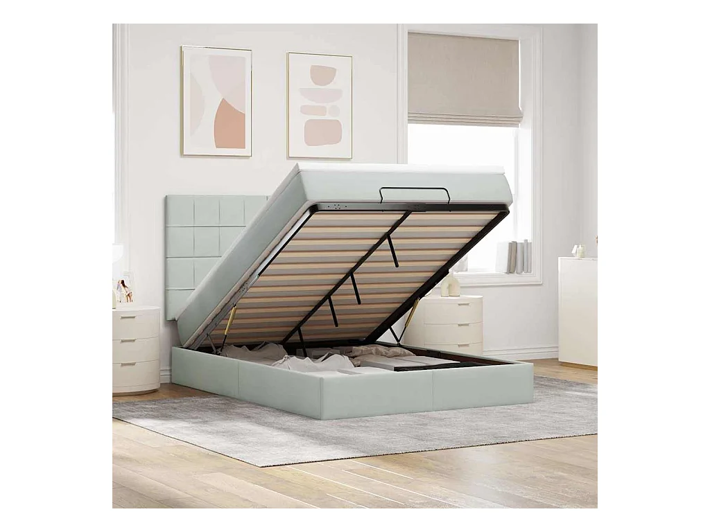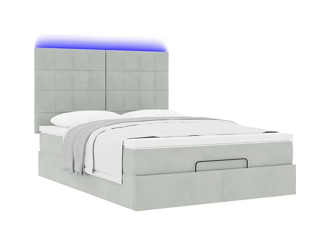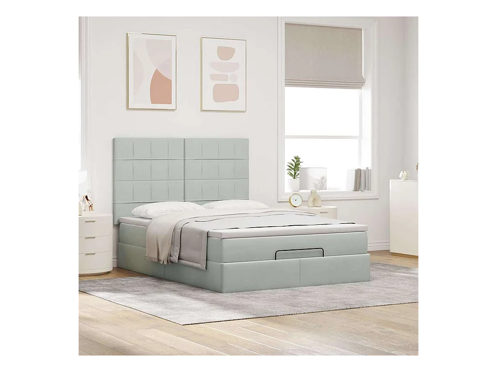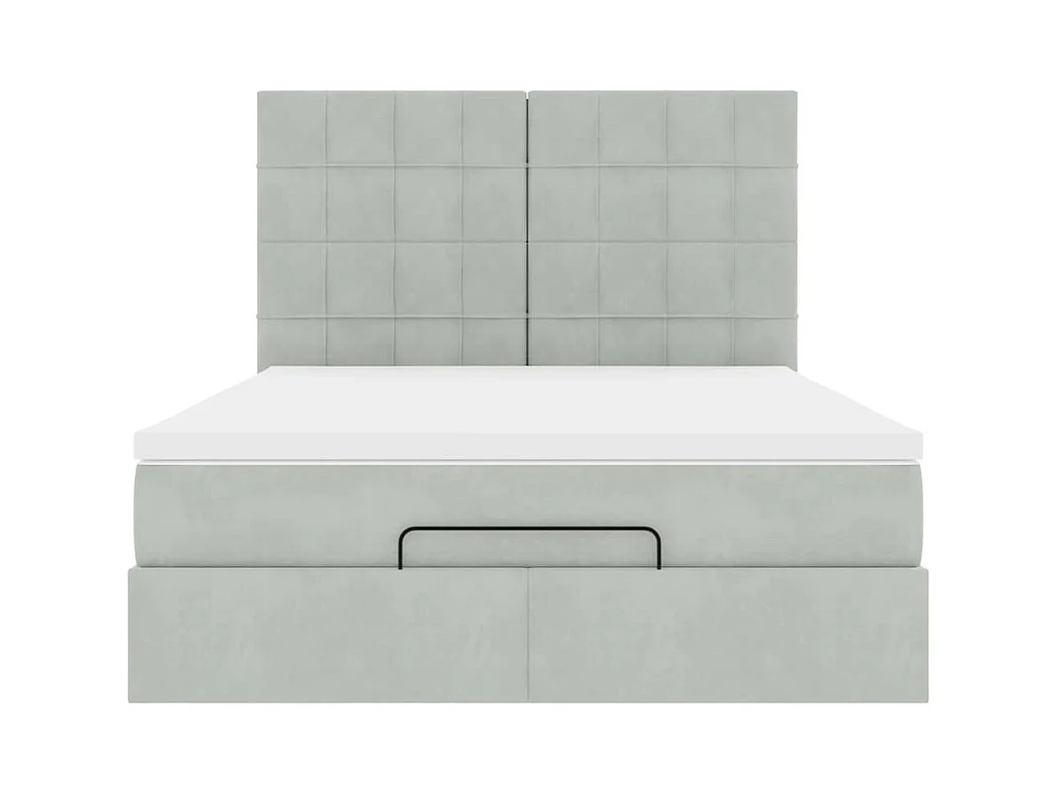 Estrutura cama otomana colchões 140x200cm veludo cinzento claro