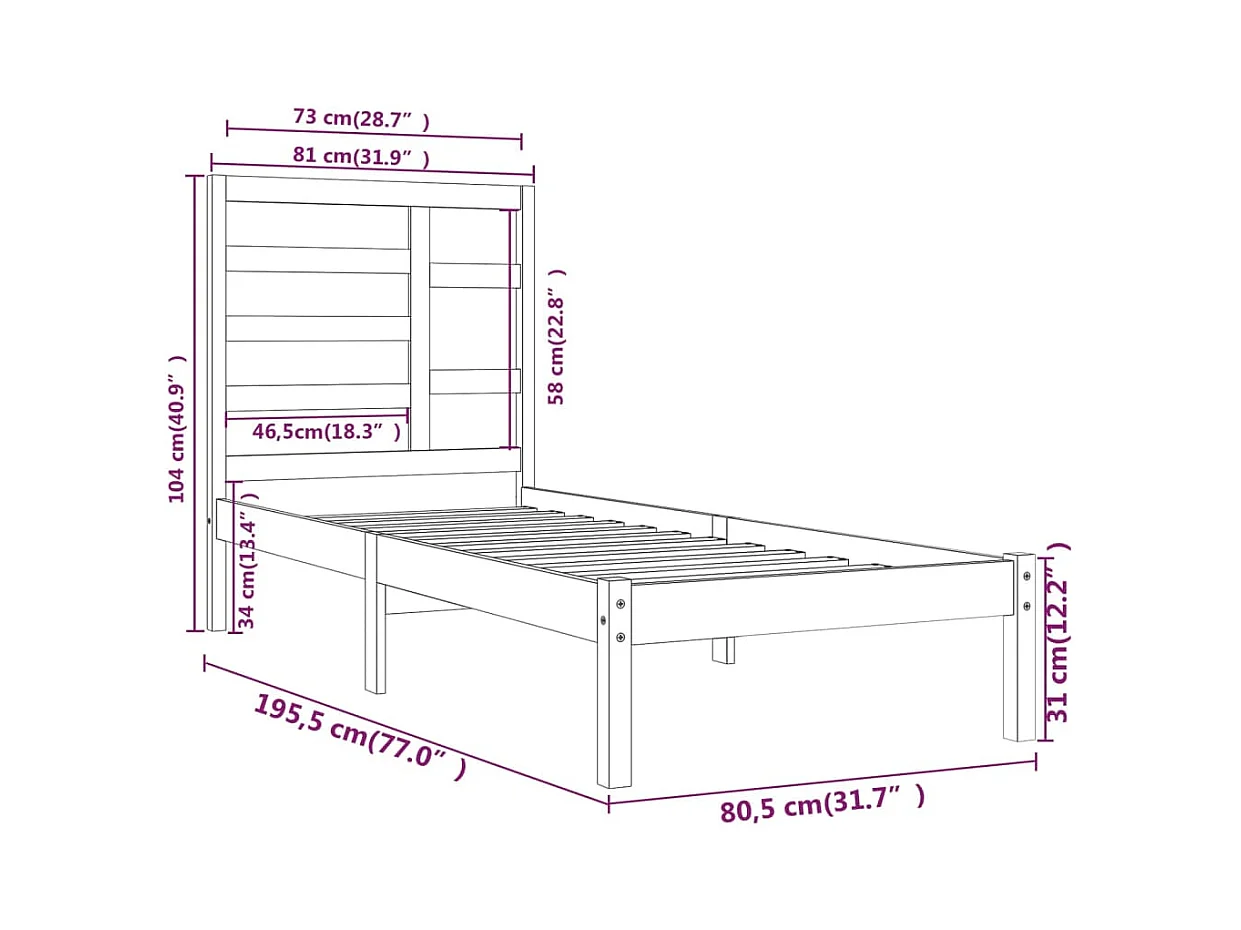 Cama sem colchão 75x190 cm madeira de pinho maciça branco
