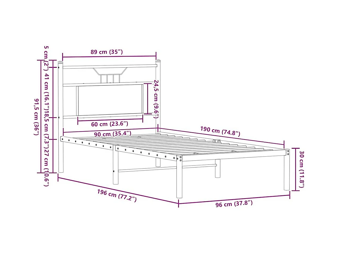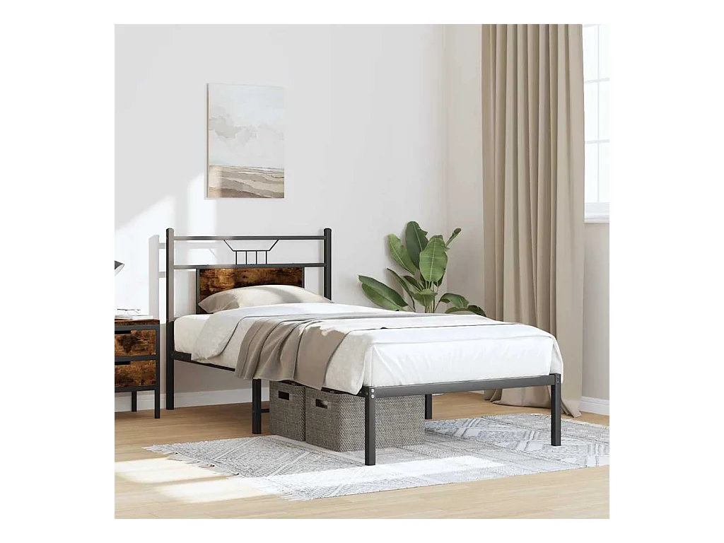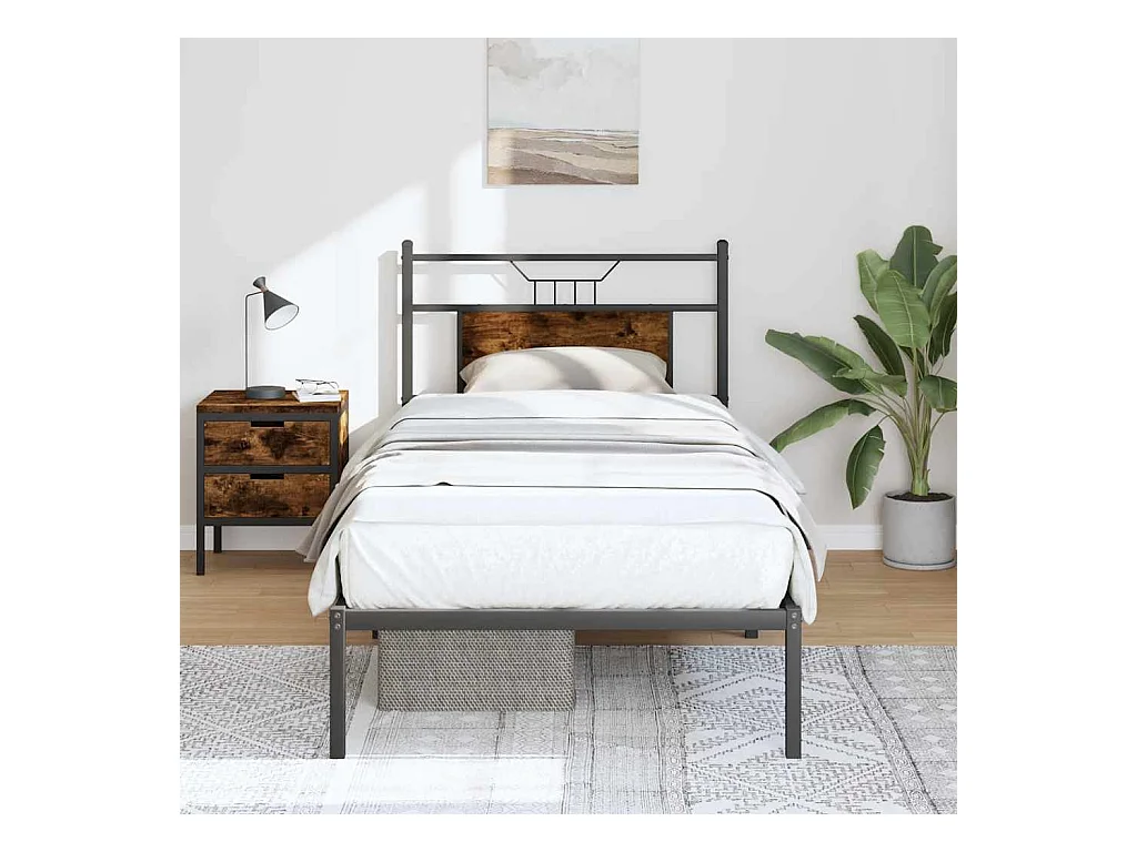 Estrutura de cama sem colchão 90x190 cm metal carvalho fumado