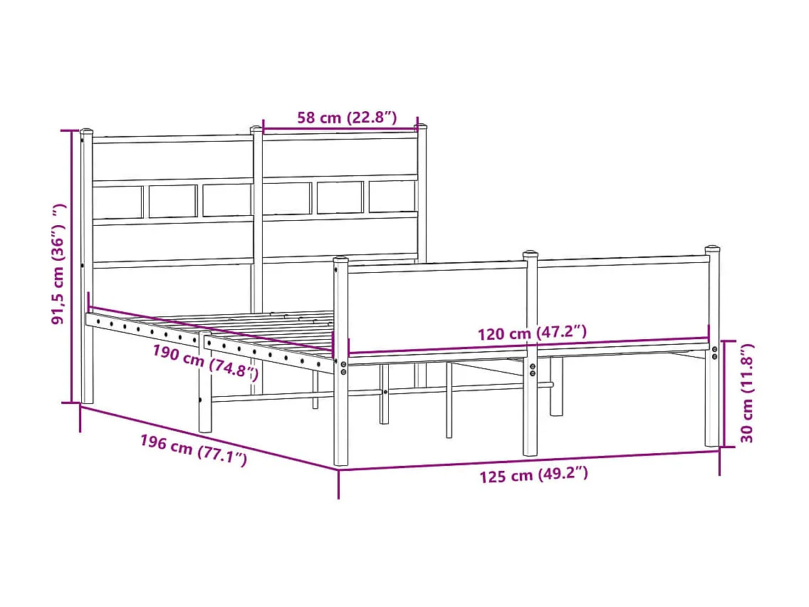 Estrutura de cama sem colchão 120x190 cm madeira velha