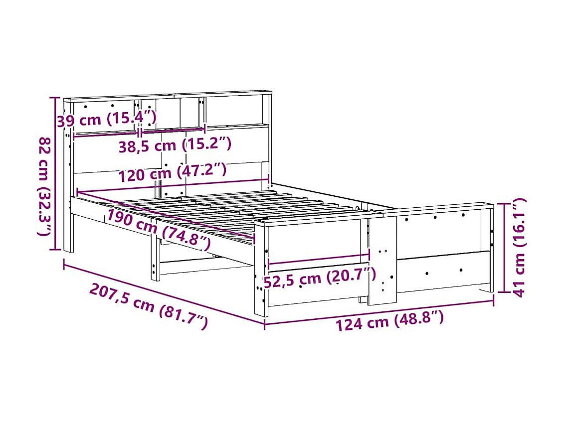 Cama sem colchão 120x190 cm madeira de pinho maciça branco