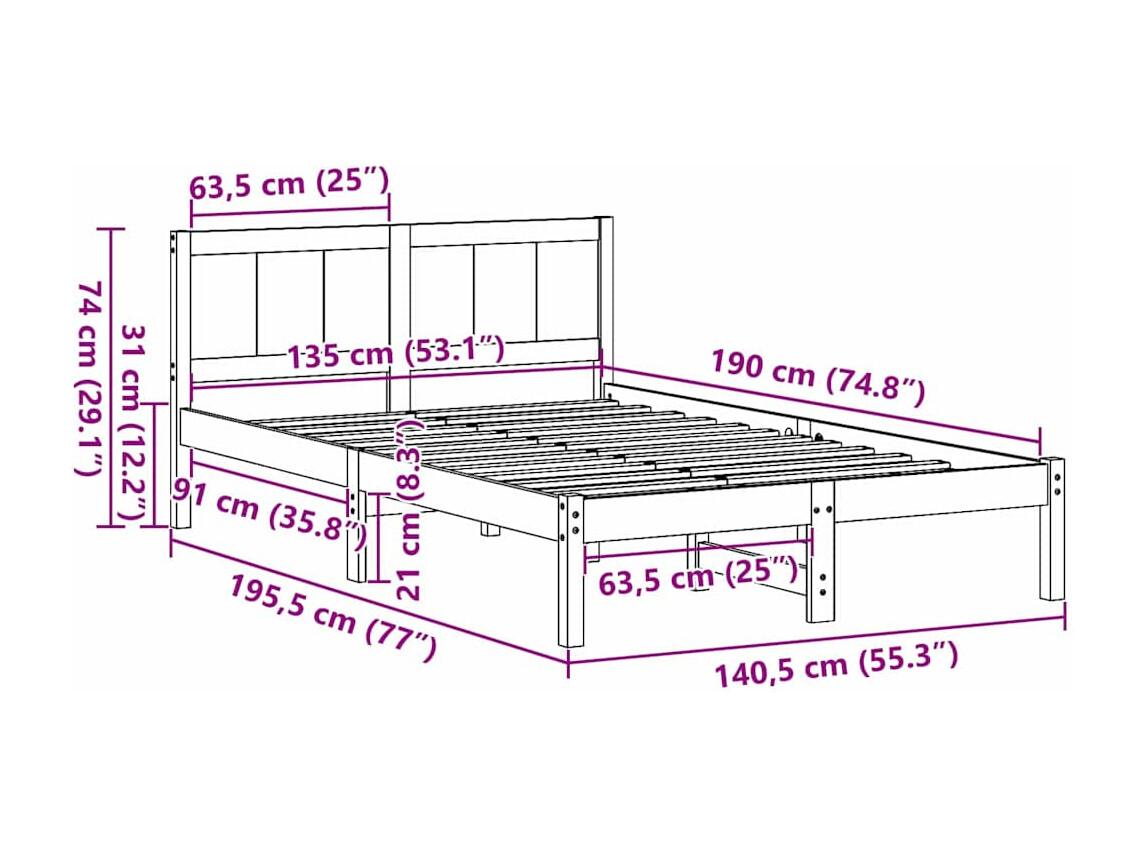 Estrutura cama c/ cabeceira 135x190 cm pinho maciço branco