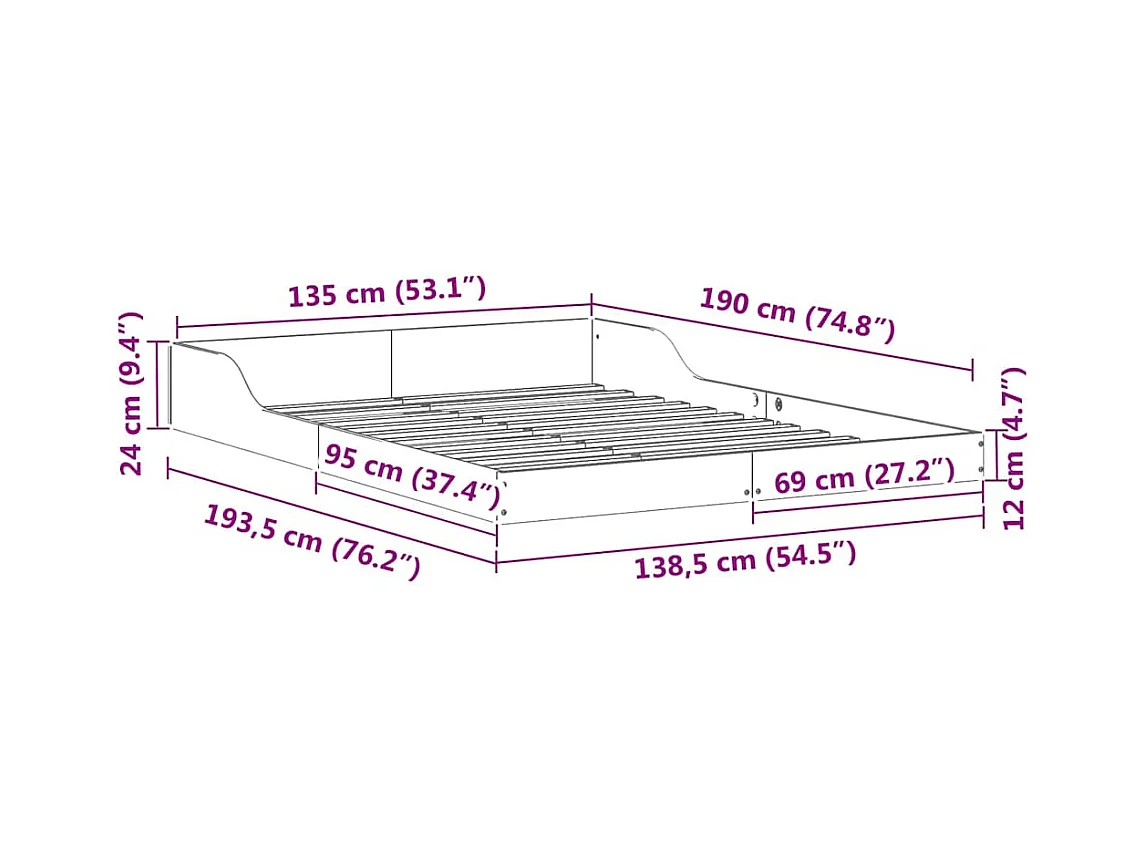 Estrutura da Cama Branco 135 x 190 cm Madeira de pinho maciça