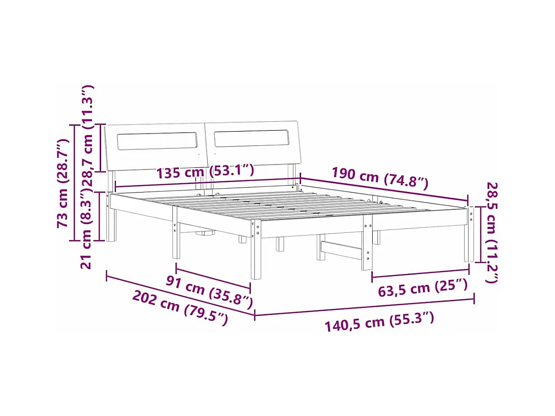Estrutura de cama dupla 135x190 cm madeira maciça branco