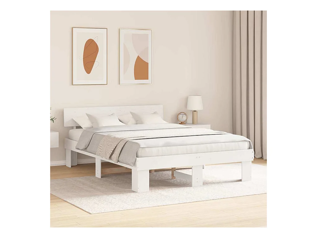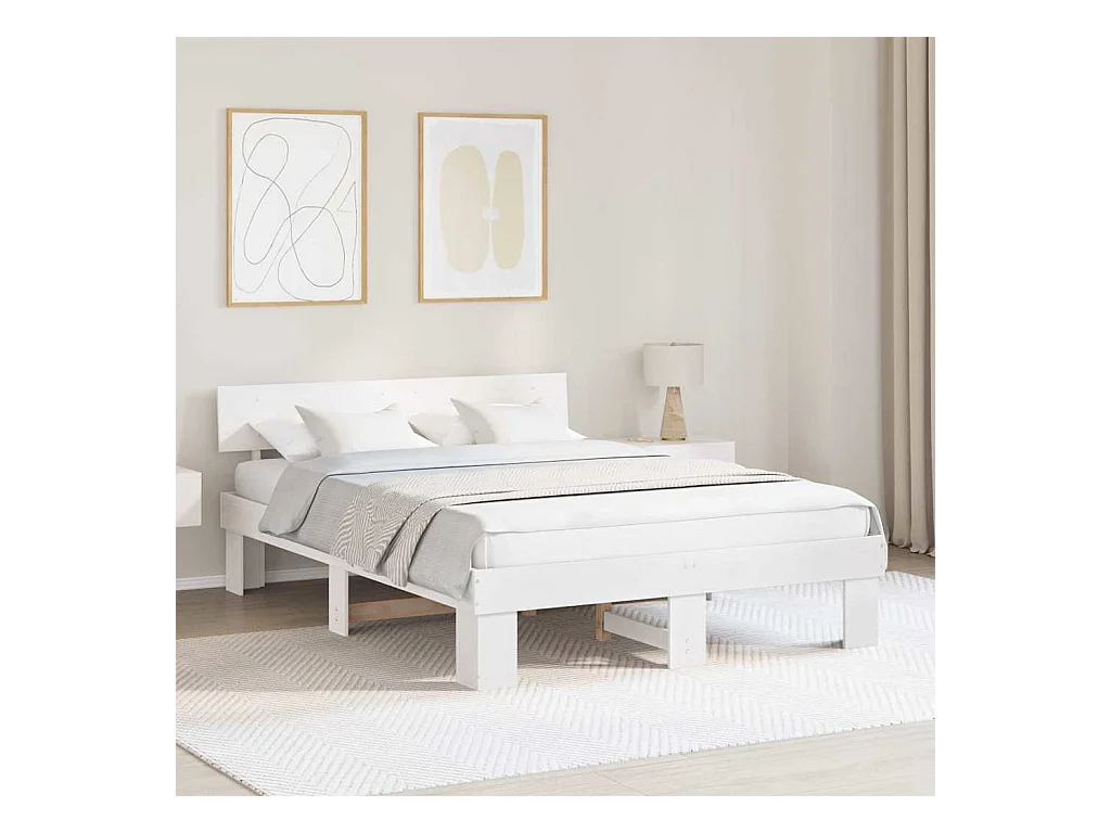 Cama sem colchão 150x200 cm madeira de pinho maciça branco