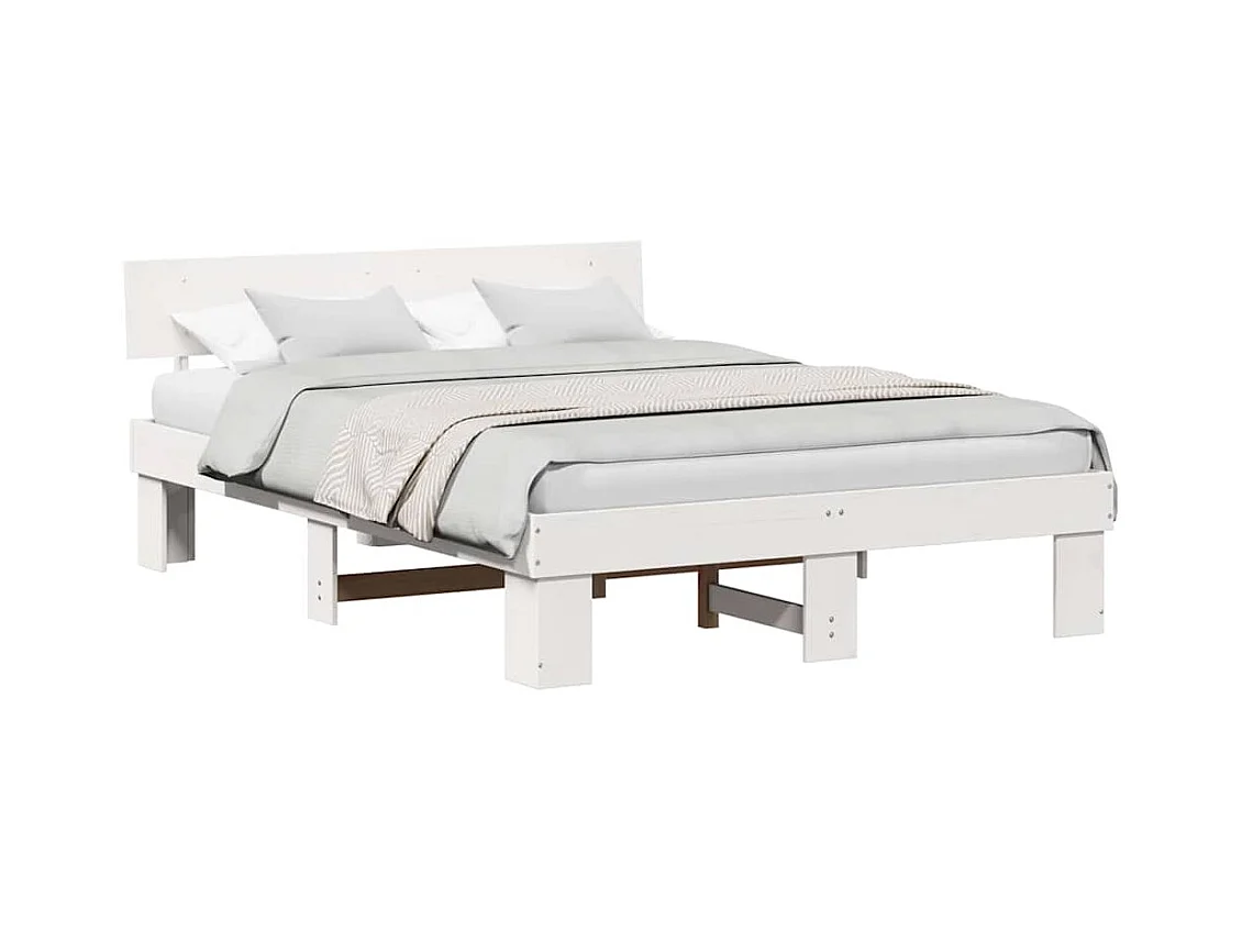 Estrutura de cama c/ cabeceira 150x200 cm pinho maciço branco