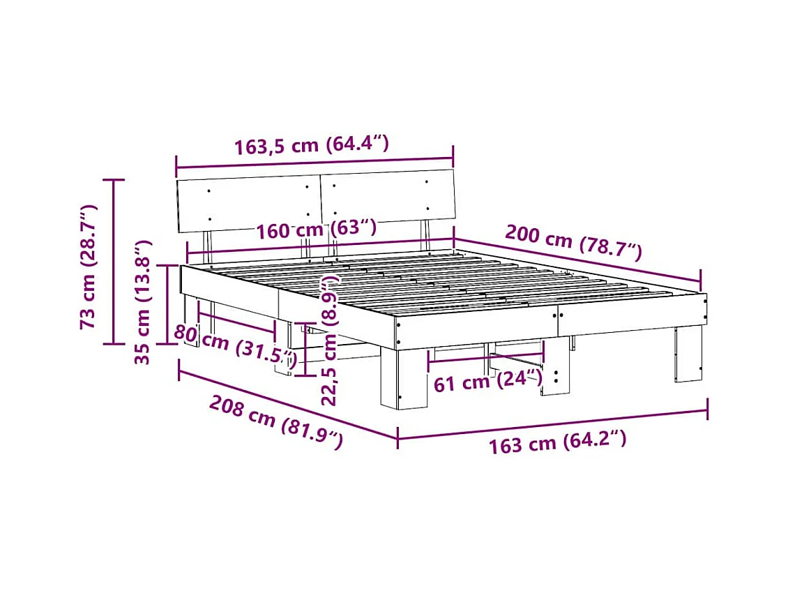 Cama sem colchão 160x200 cm madeira de pinho maciça branco