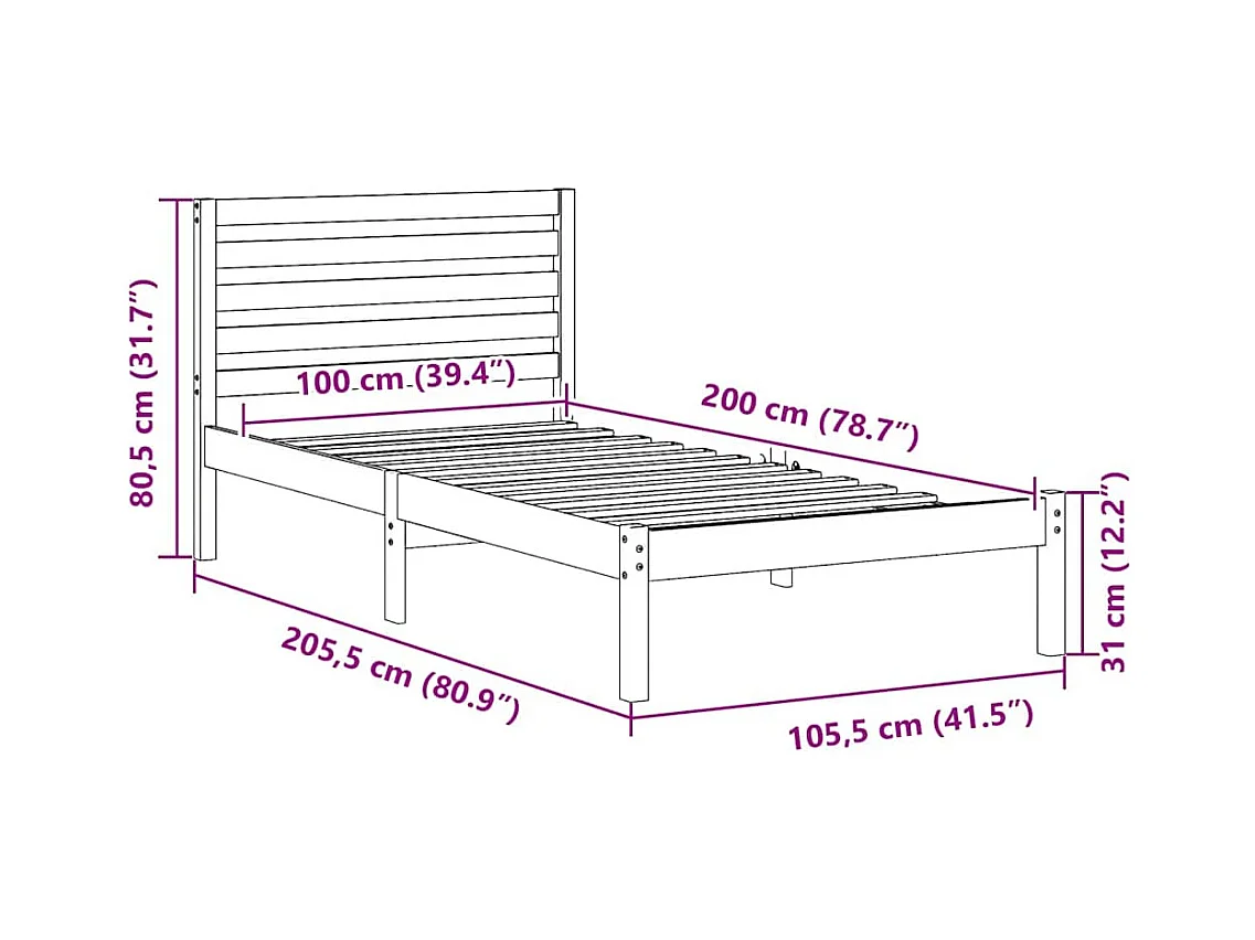 Estrutura da Cama Branco 75 x 190 cm Madeira de pinho maciça