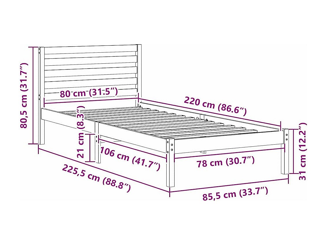 Estrutura da Cama Branco 80 x 220 cm Madeira de pinho maciça