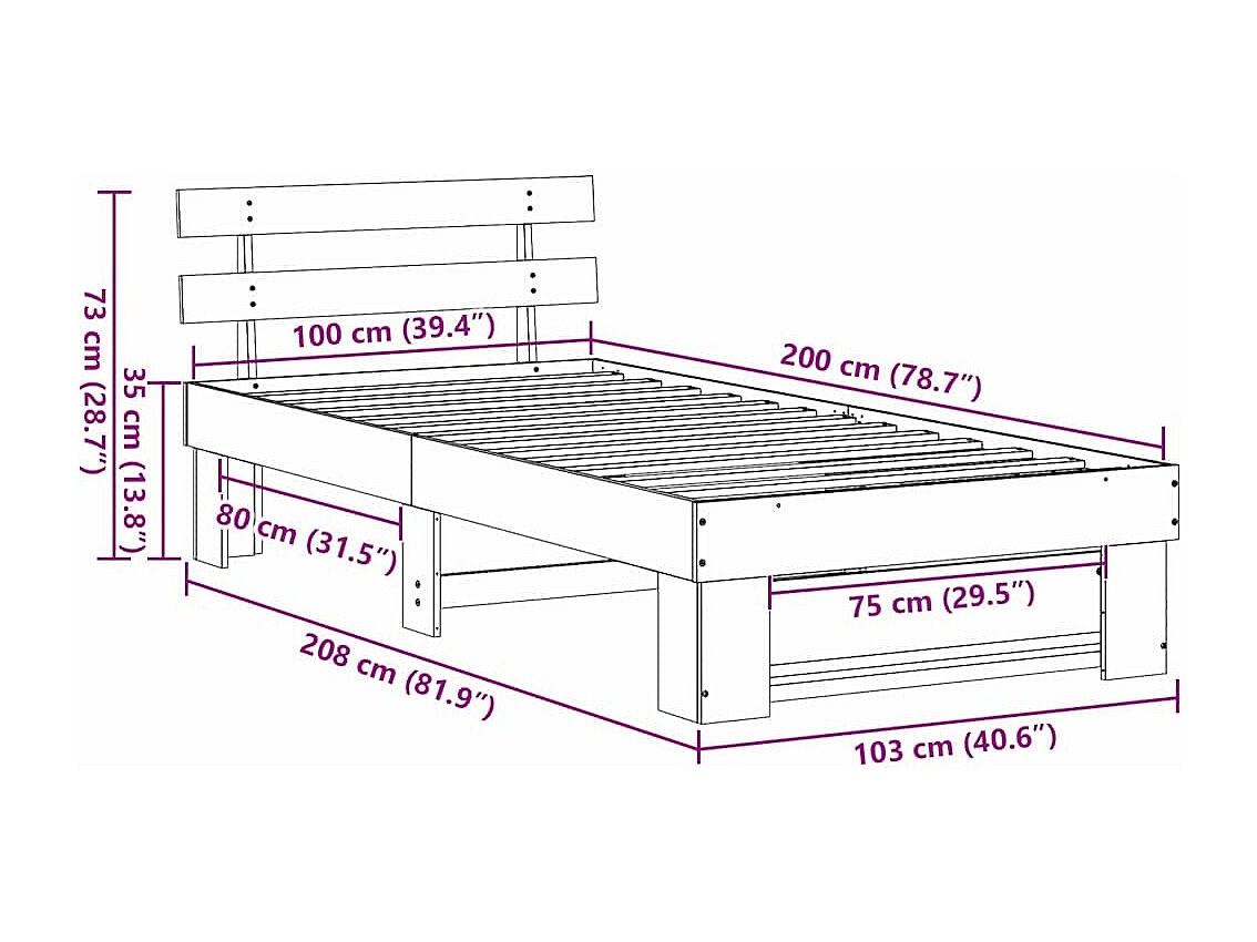 Estrutura da Cama Castanho 100 x 200 cm Madeira de pinho maciça