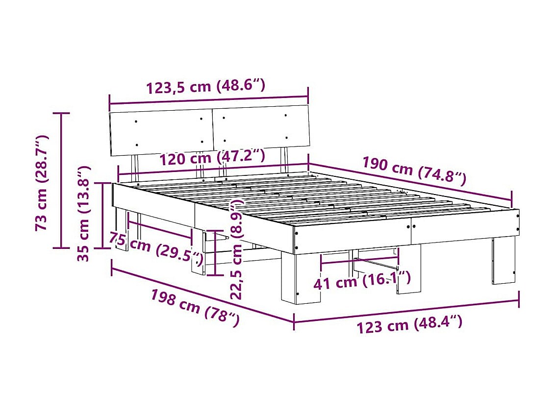 Estrutura de cama pequena casal 120x190 cm pinho maciço