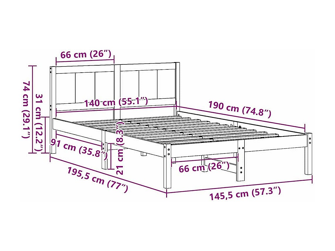 Estrutura de cama 140x190 cm madeira de pinho maciça