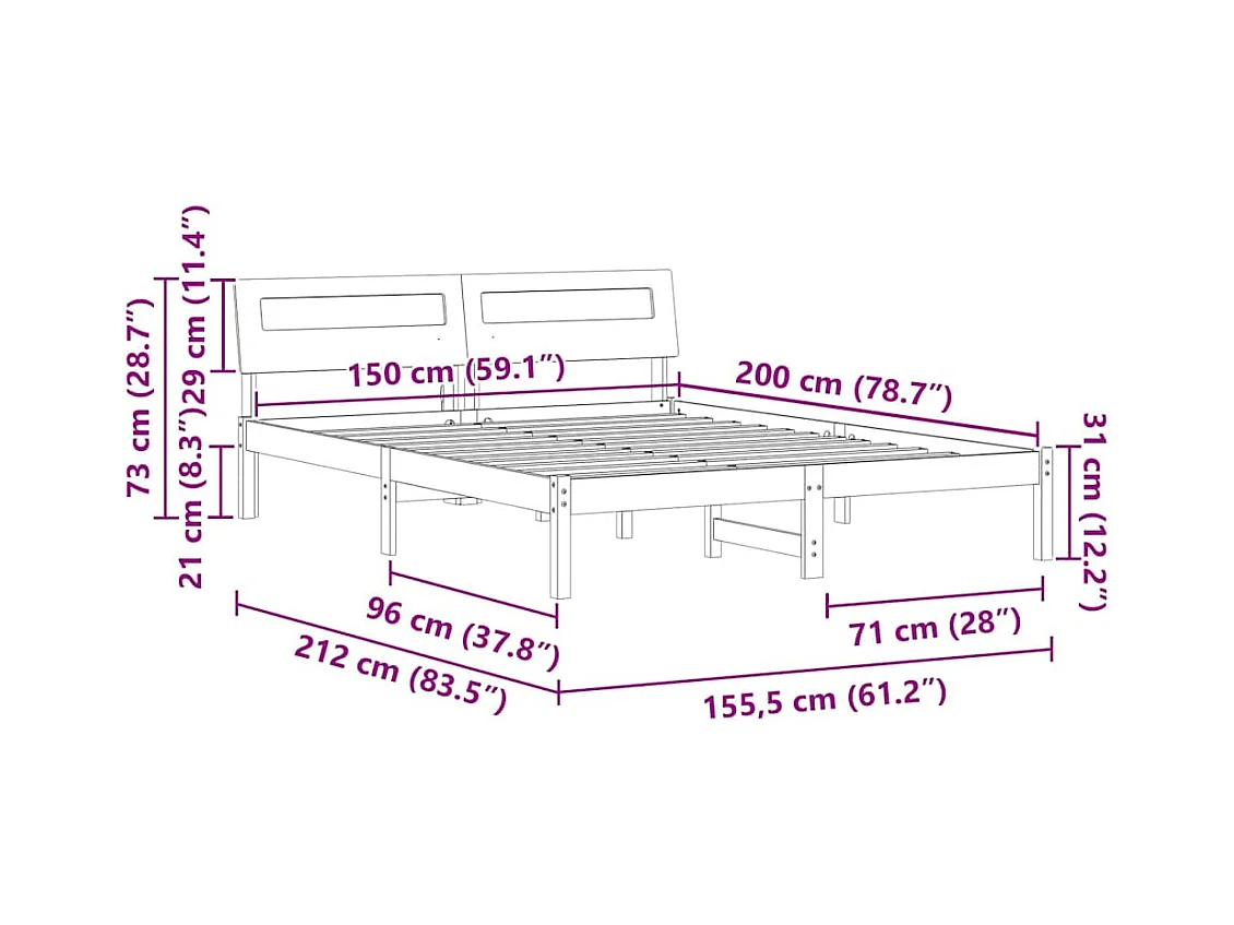 Estrutura de cama 5FT King 150x200 cm pinho maciço