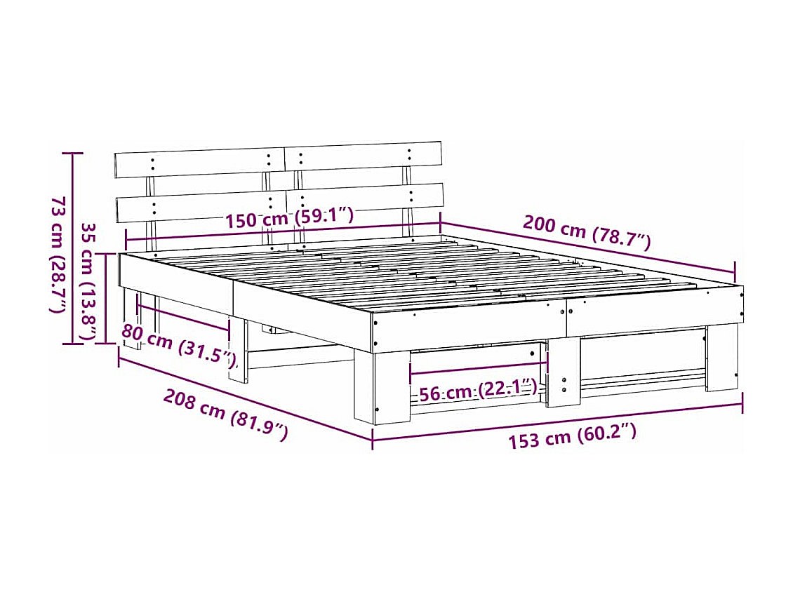 Estrutura de cama king size 150x200 cm 5FT madeira maciça