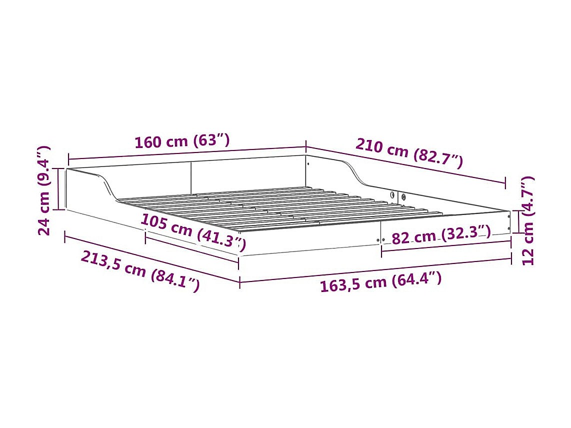 Estrutura da Cama Castanho 160 x 210 cm Madeira de pinho maciça