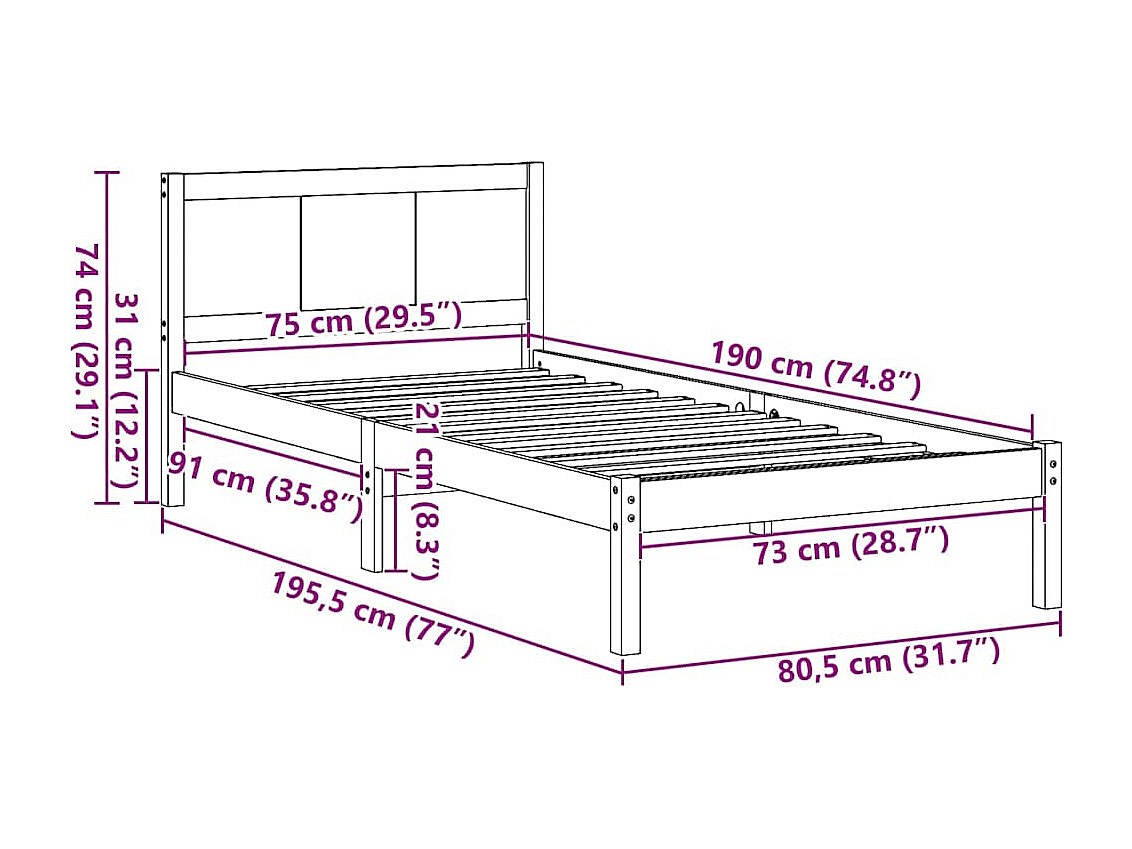 Estrutura da Cama Castanho 75 x 190 cm Madeira de pinho maciça
