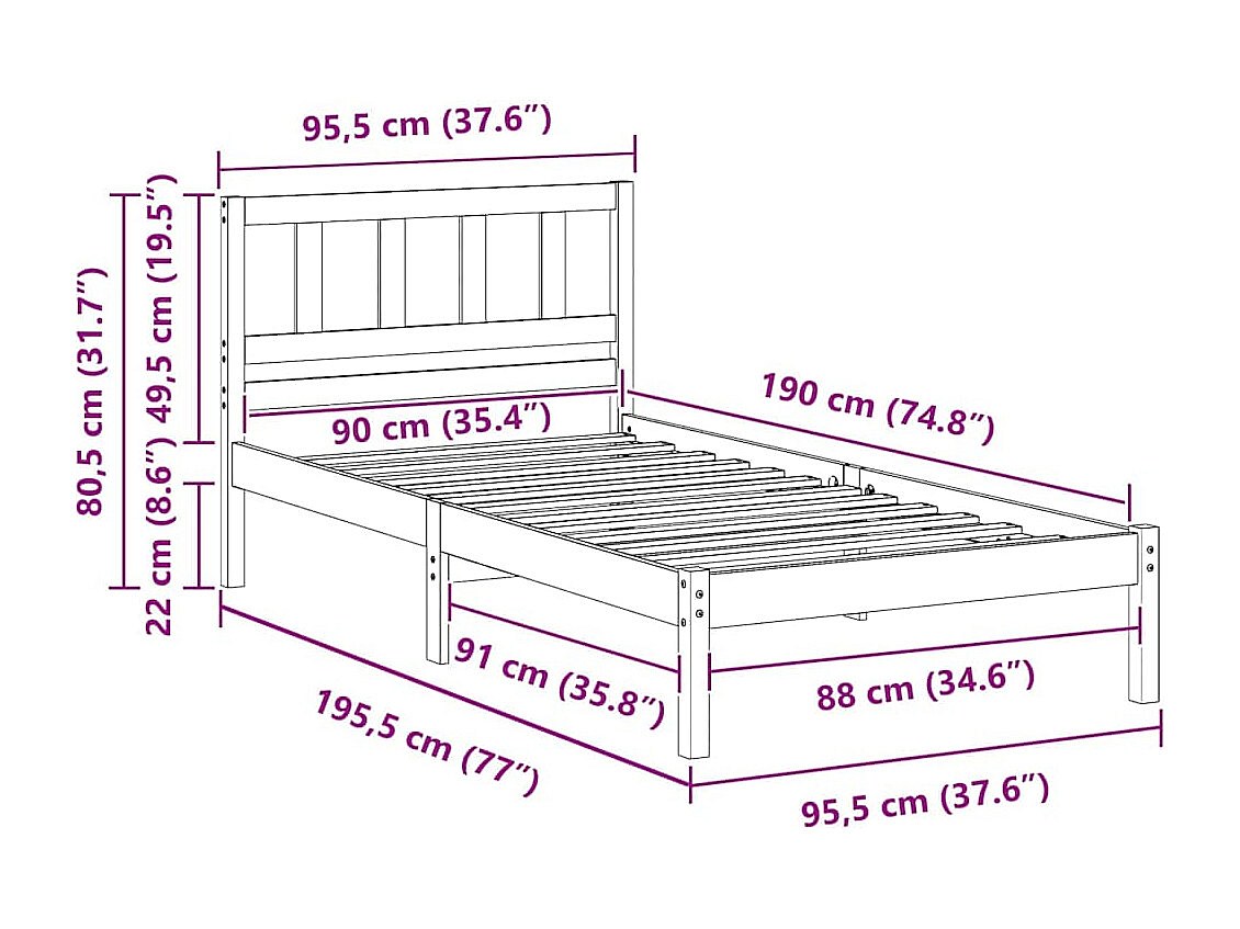 Estrutura da Cama Castanho 90 x 190 cm Madeira de pinho maciça