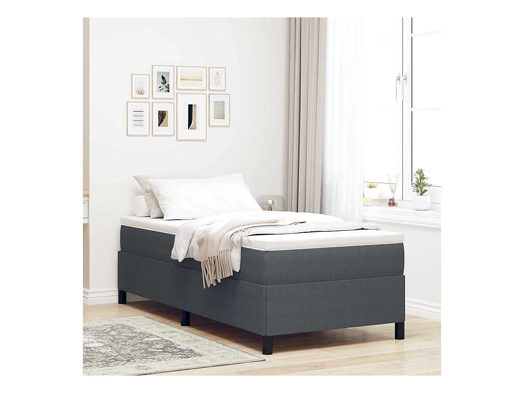 Cama box spring com colchão Cinzento escuro 100 x 200 cm tecido