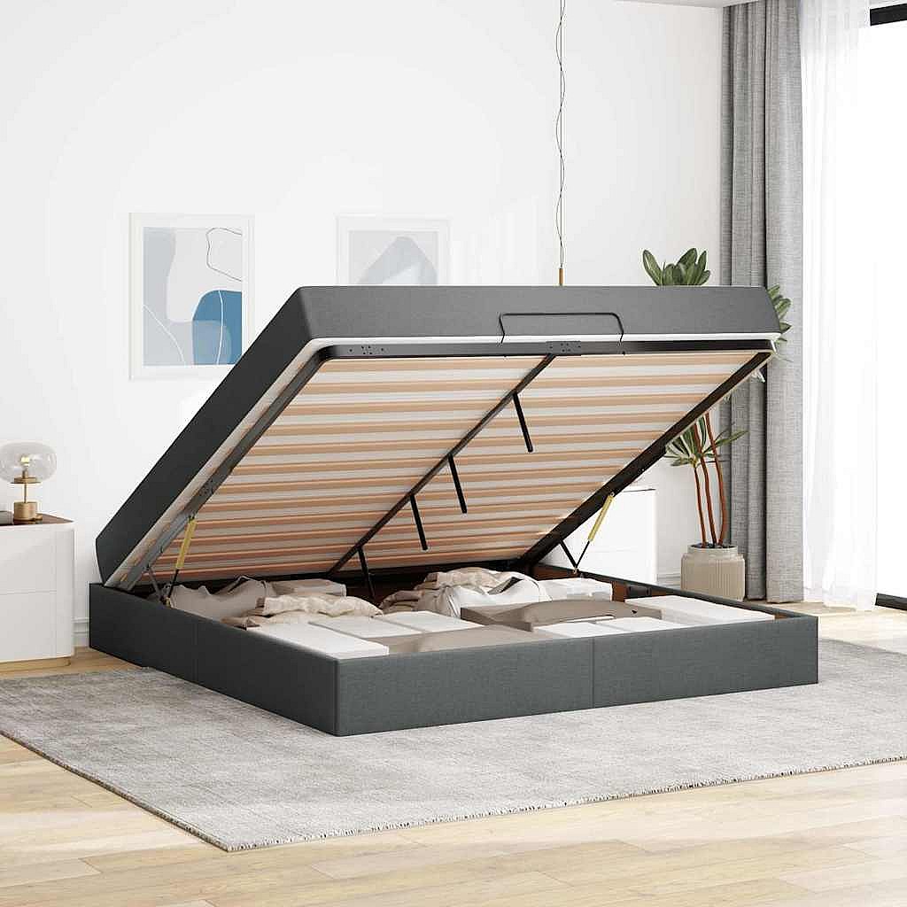 Estrutura da Cama Cinzento escuro 180 x 200 cm tecido