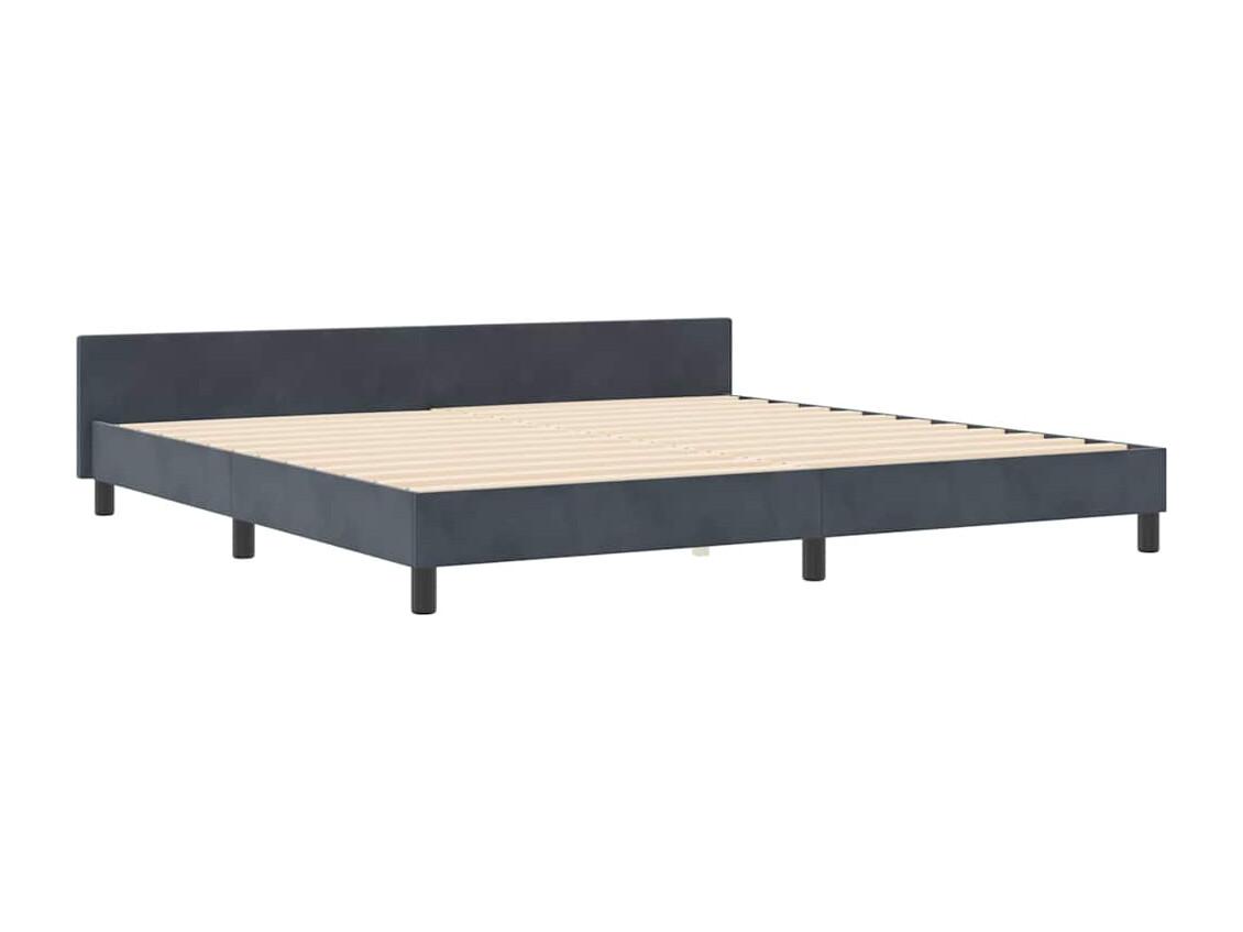 Estrutura de cama c/ cabeceira 200x200cm veludo cinzento-escuro