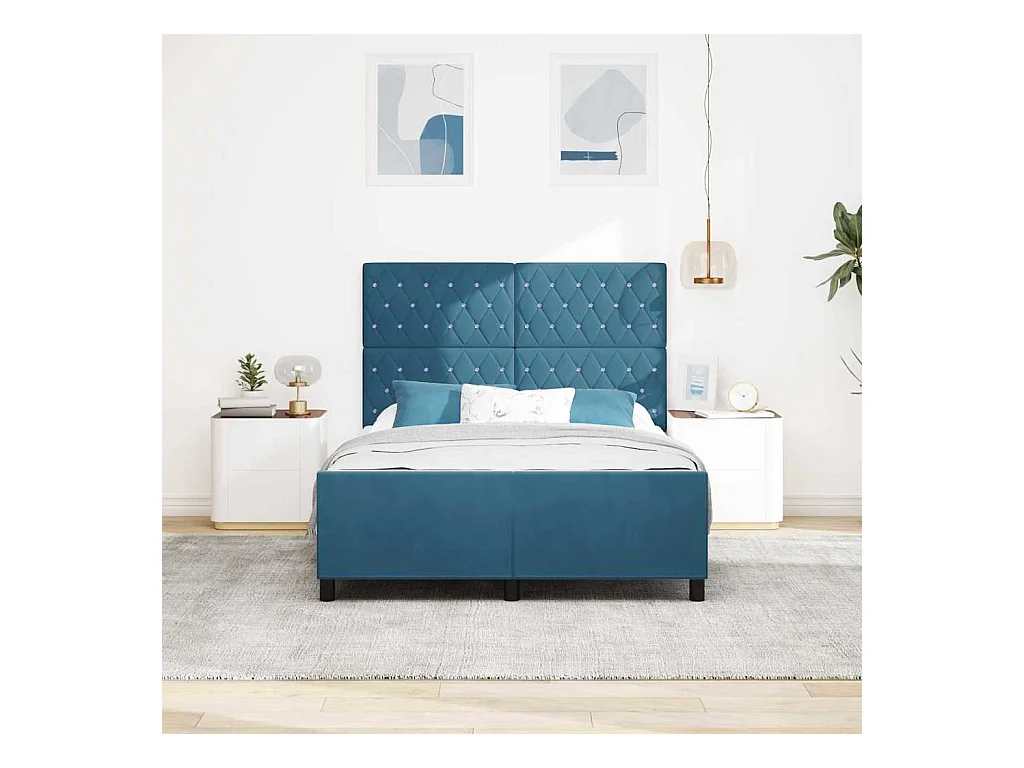 Cama c/ cabeceira 140x190 cm veludo azul-escuro PT699260
