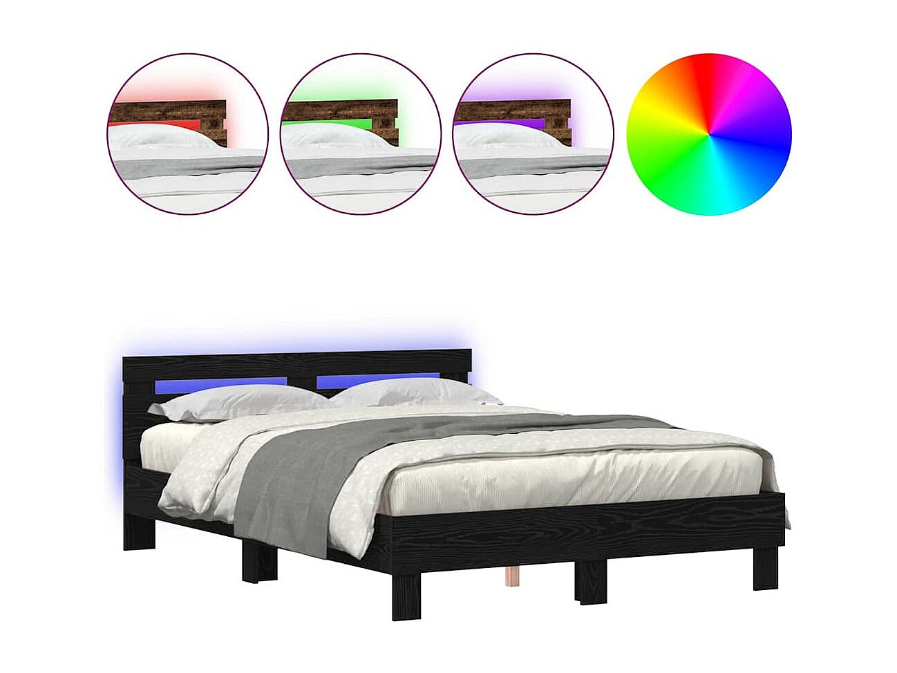 Estrutura cama c/ luzes LED 150x200 cm derivados madeira preto