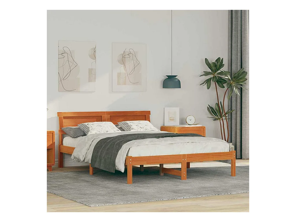 Estrutura da Cama com cabeceira Castanho-mel 140 x 190 cm