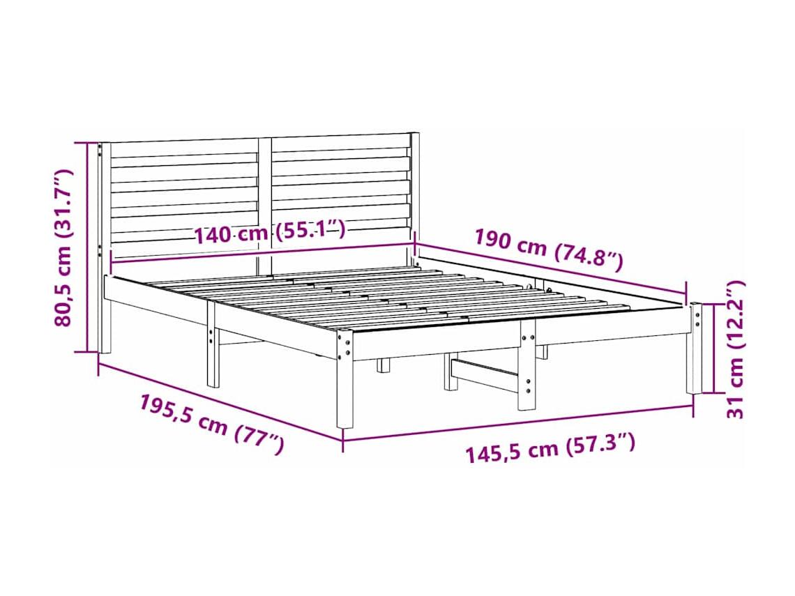 Estrutura da Cama Castanho 140 x 190 cm Madeira de pinho maciça