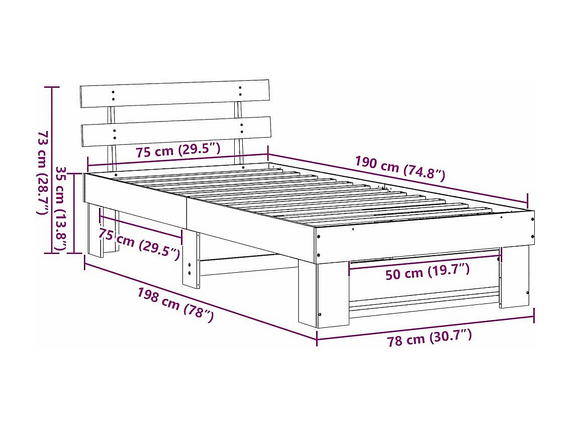 Estrutura da Cama com cabeceira Castanho-mel 75 x 190 cm