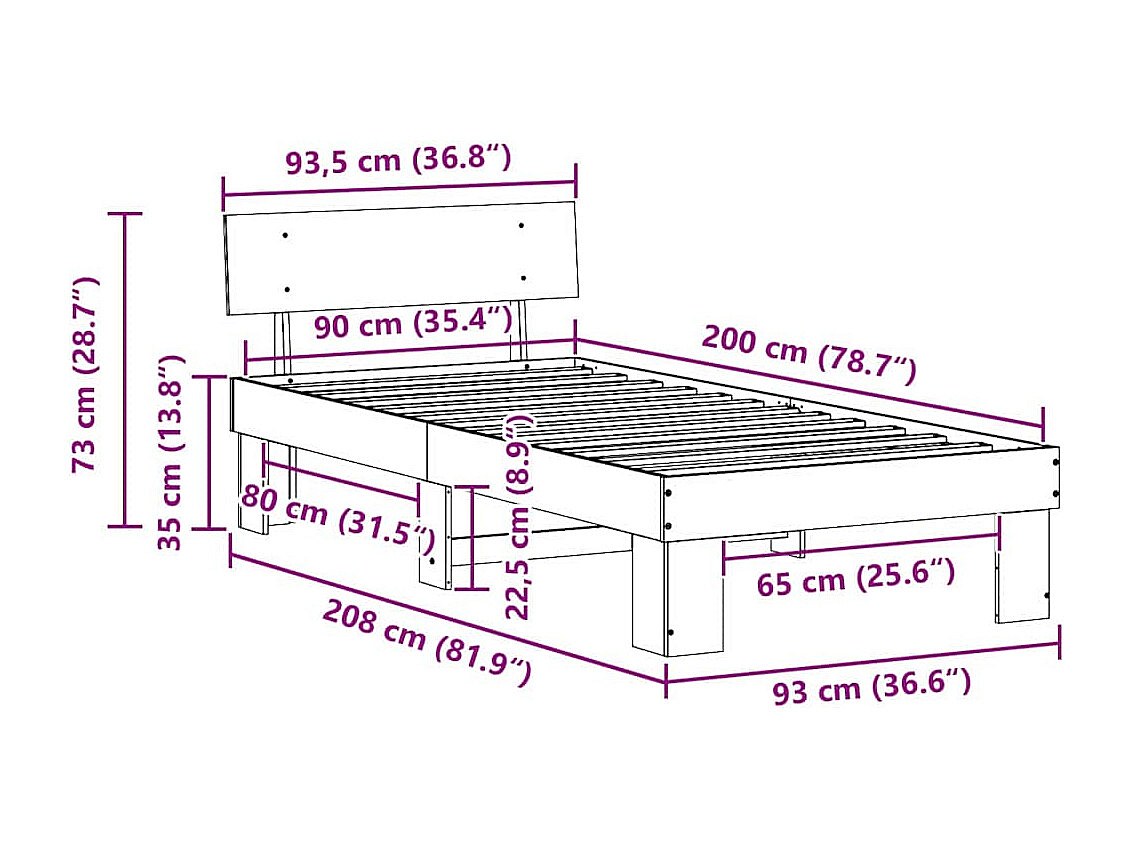 Estrutura da Cama com cabeceira Natural 90 x 200 cm