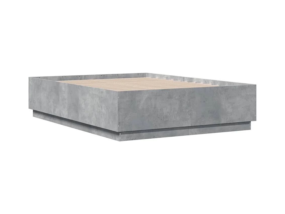 Estrutura de cama c/ luzes LED derivados madeira cinza sonoma