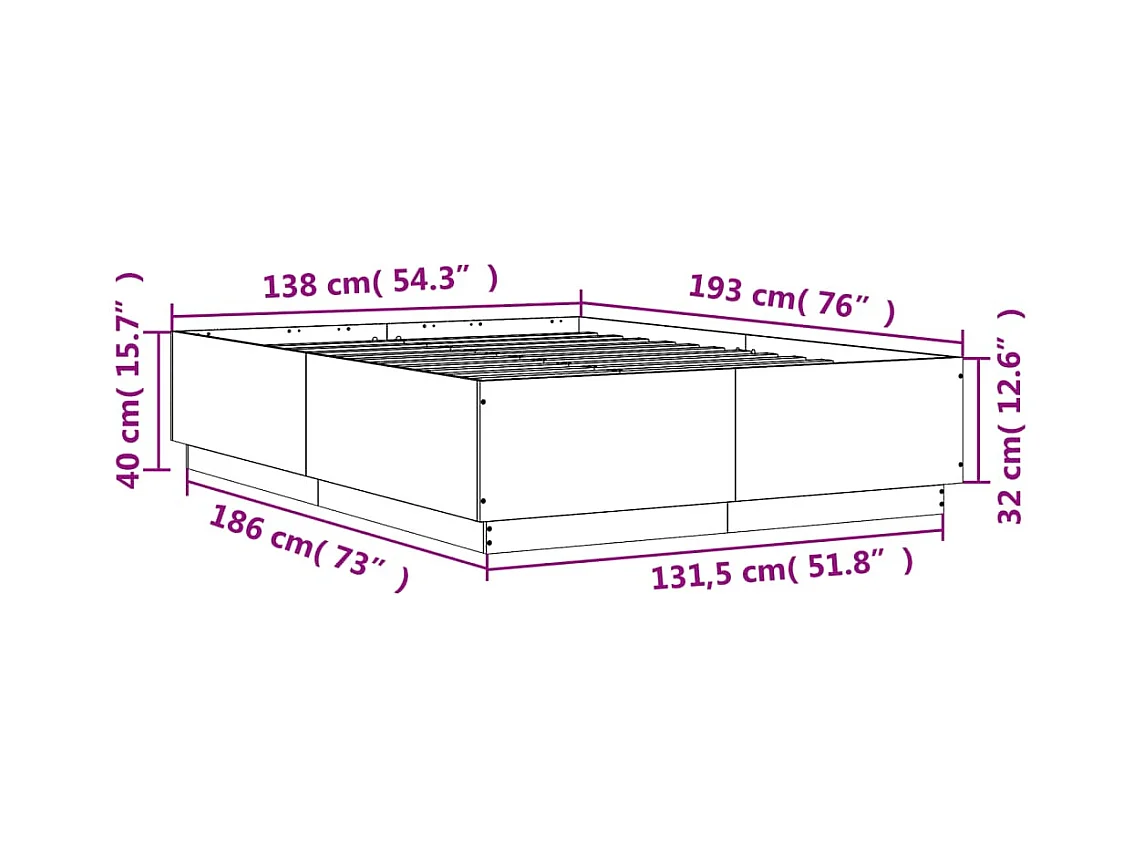 Estrutura de cama 135x190 cm derivados de madeira/metal