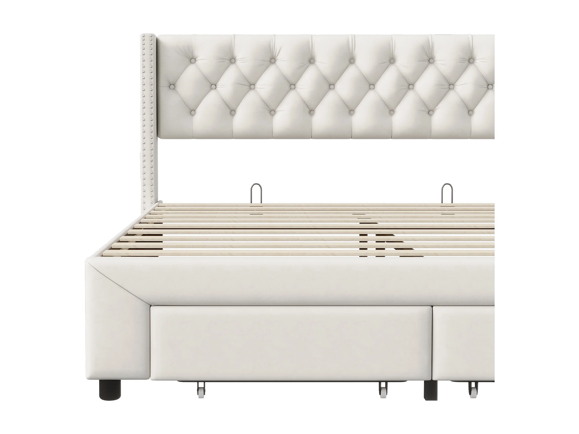 Estrutura de cama 140 x 190 com gavetas, cama estofada com LED e USB, cama estofada em veludo, bege