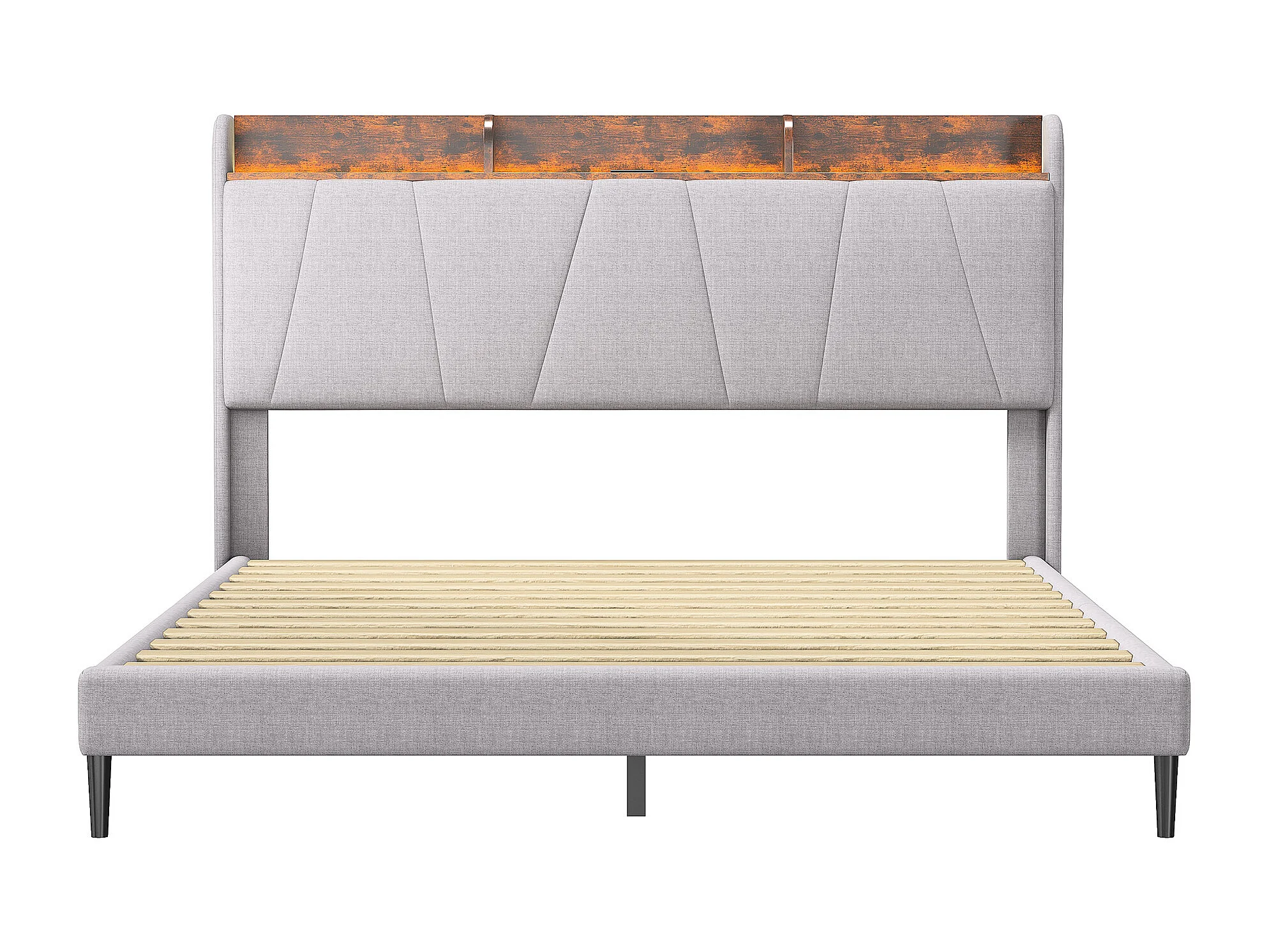 Estrutura de cama 140 x 200 cm com USB e LED, cama multifuncional com cabeceira de arrumação, linho, branco