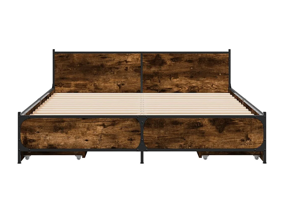 Estrutura de cama gavetas derivados madeira carvalho castanho