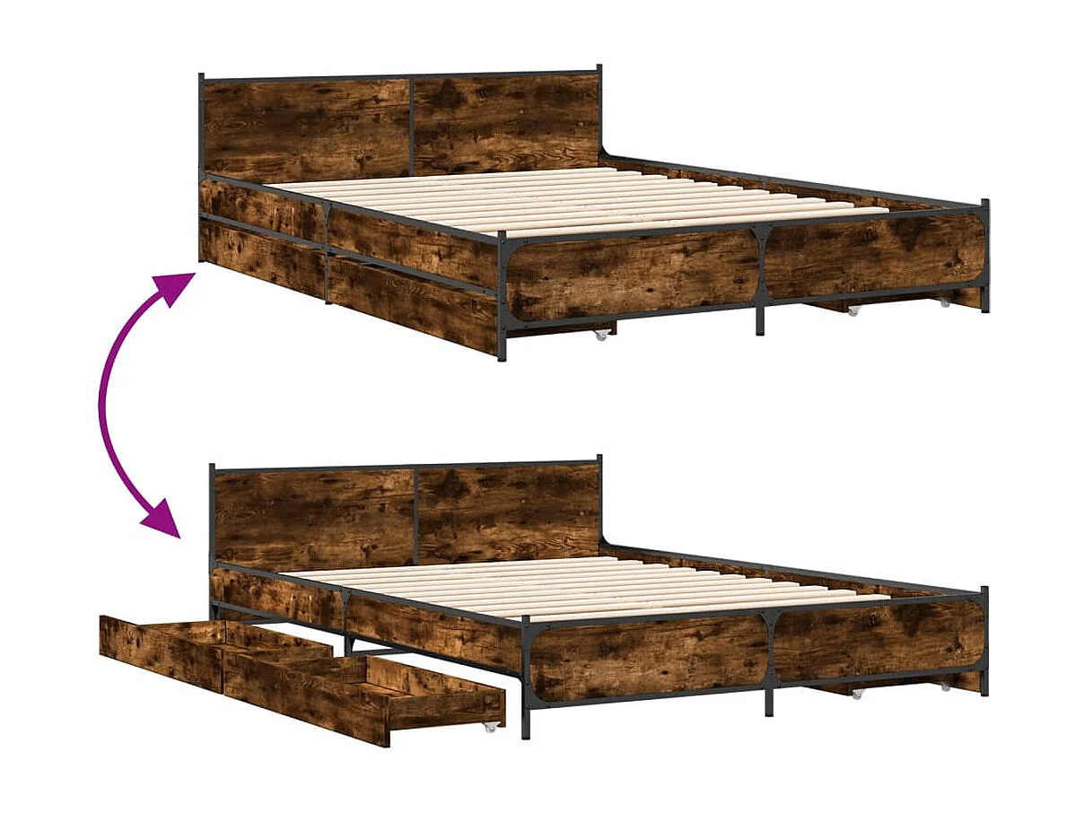 Estrutura de cama c/ gavetas derivados madeira carvalho fumado