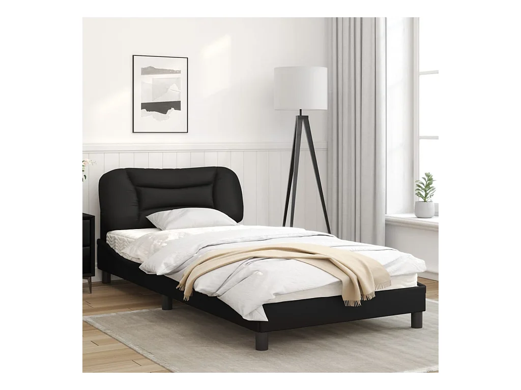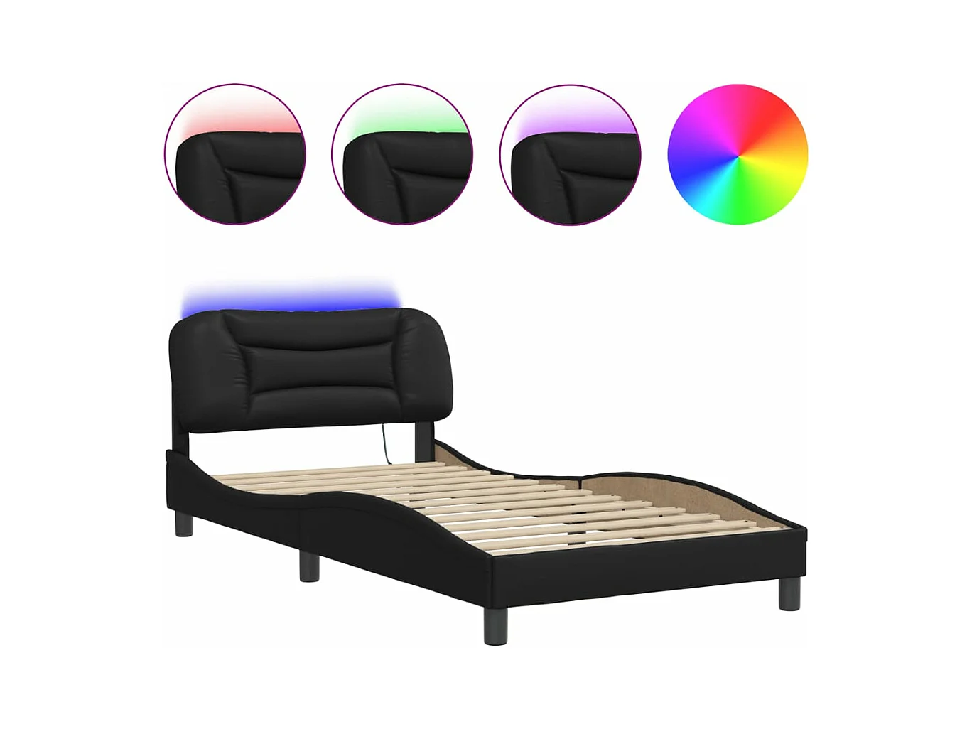 Estrutura de cama c/ luzes LED 100x200cm couro artificial preto