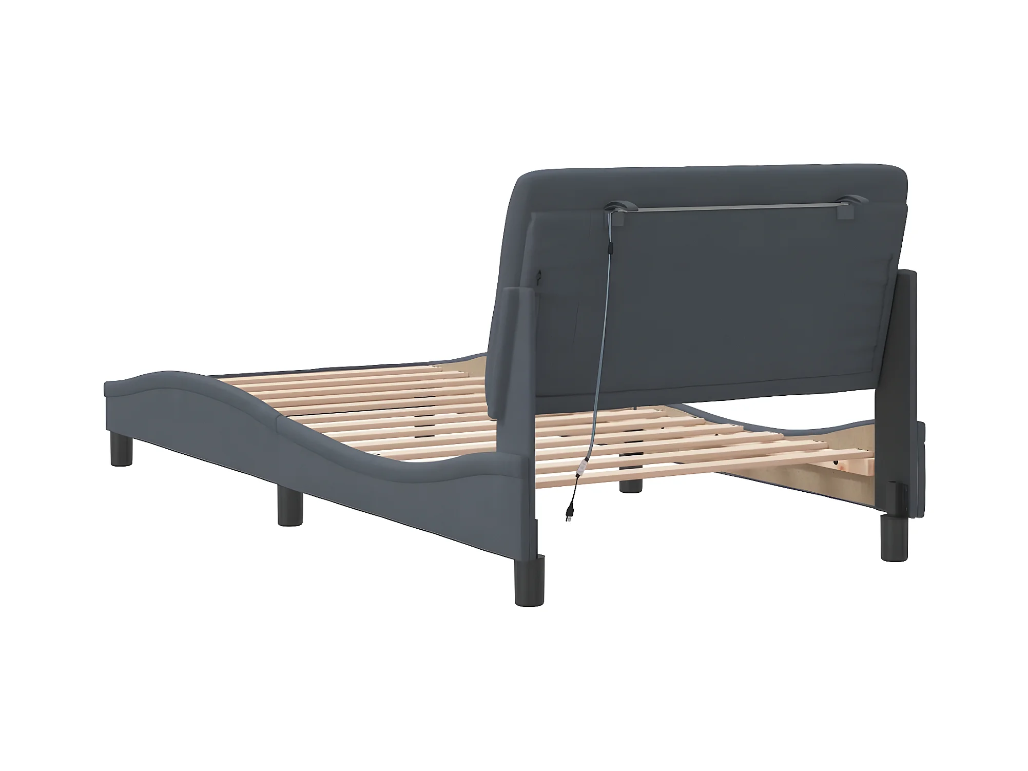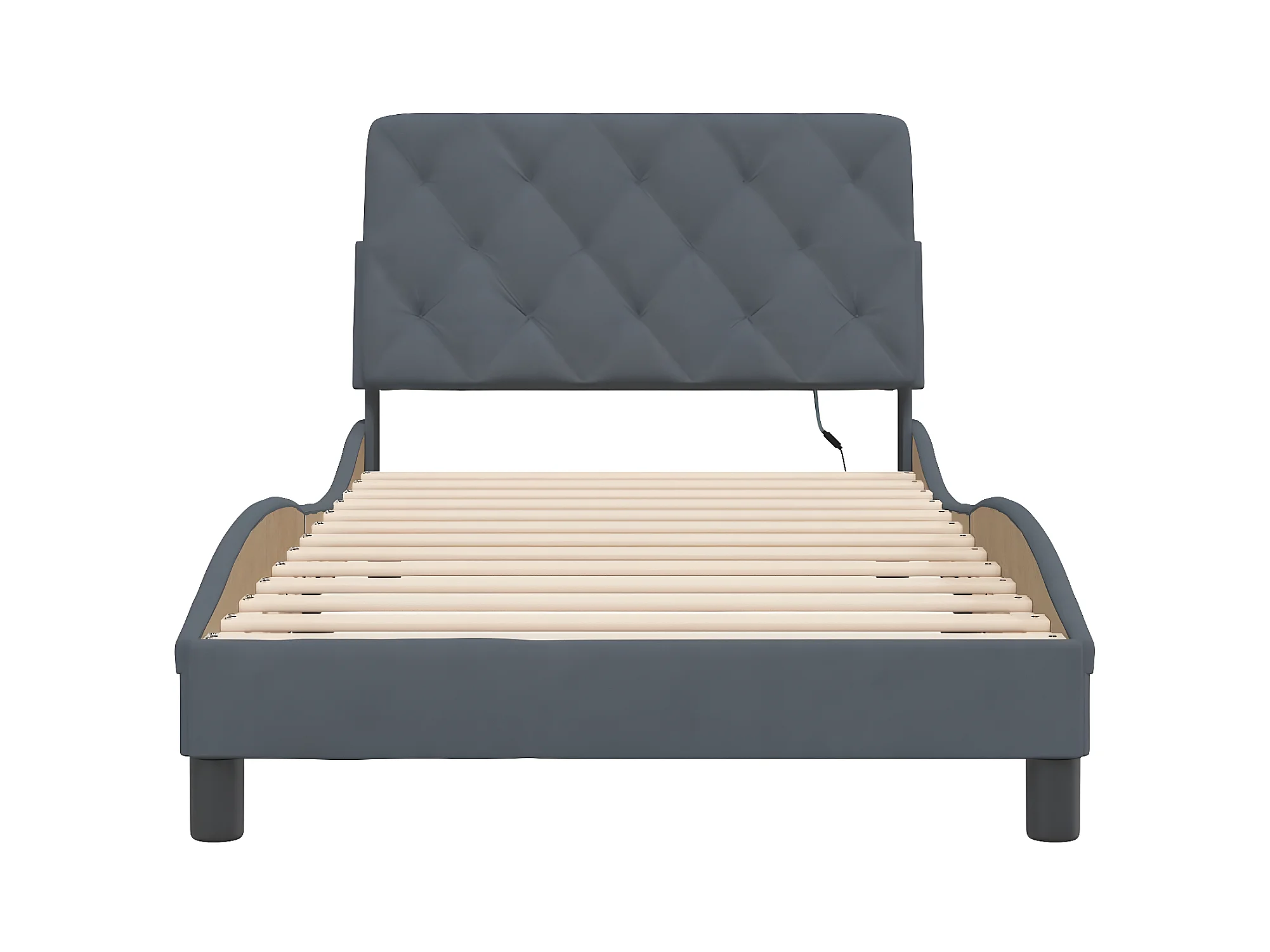 Estrutura de cama c/ luzes LED 100x200cm veludo cinzento-escuro