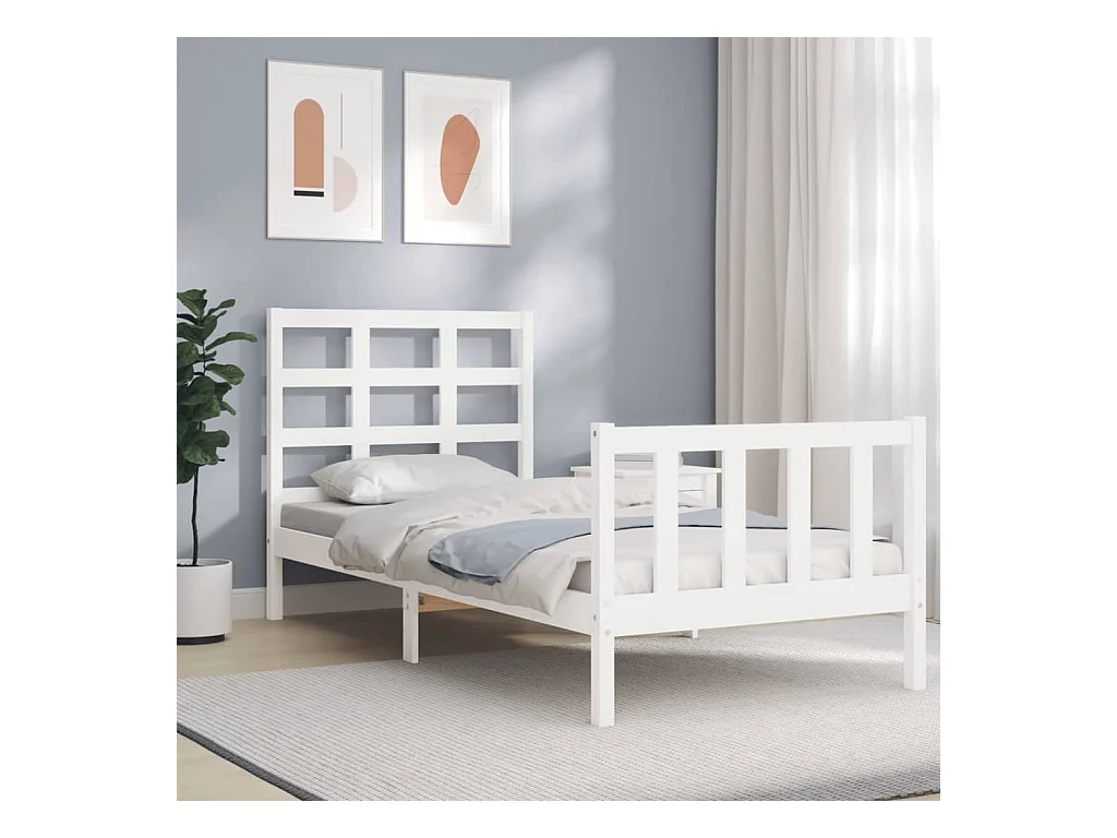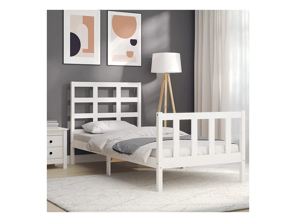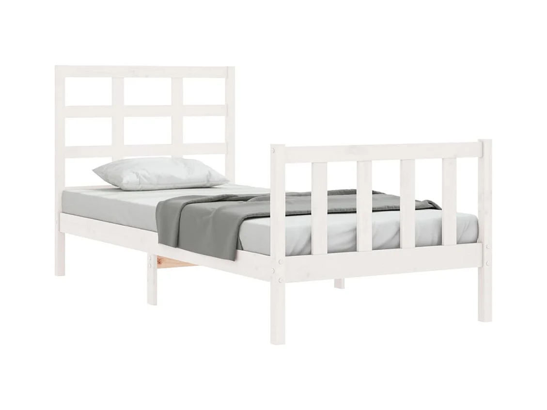 Estrutura de cama com cabeceira 100x200cm madeira maciça branco