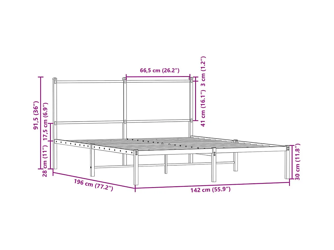 Estrutura de cama com cabeceira 137x190cm metal carvalho fumado
