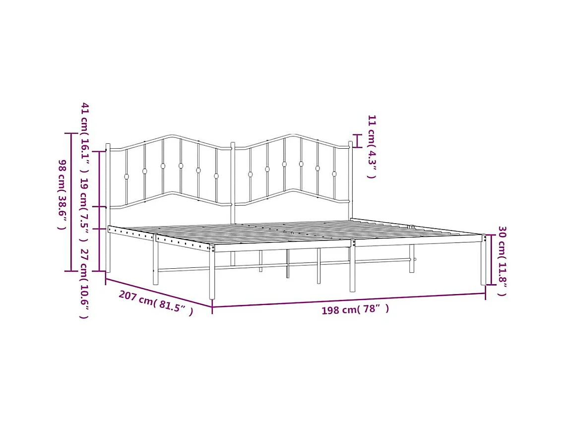 Estrutura de cama com cabeceira e pés 193x203 cm metal preto