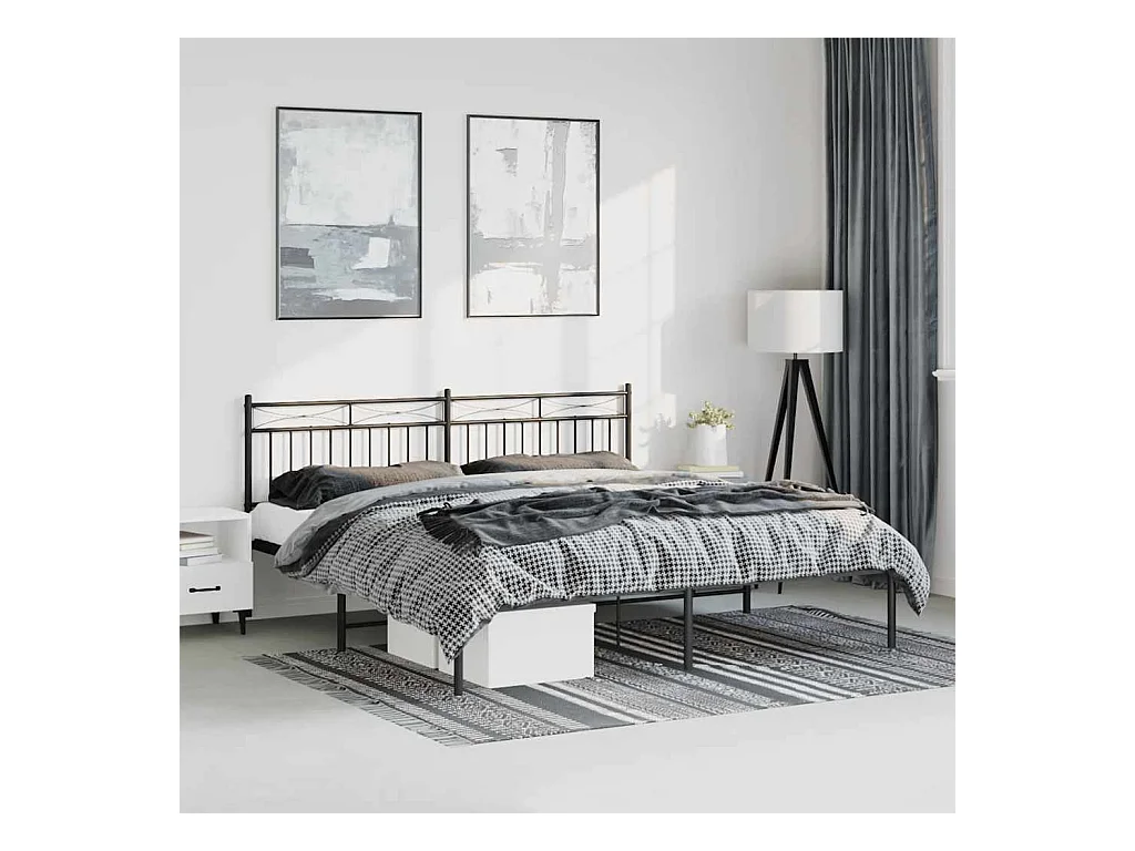 Estrutura de cama com cabeceira e pés 193x203 cm metal preto