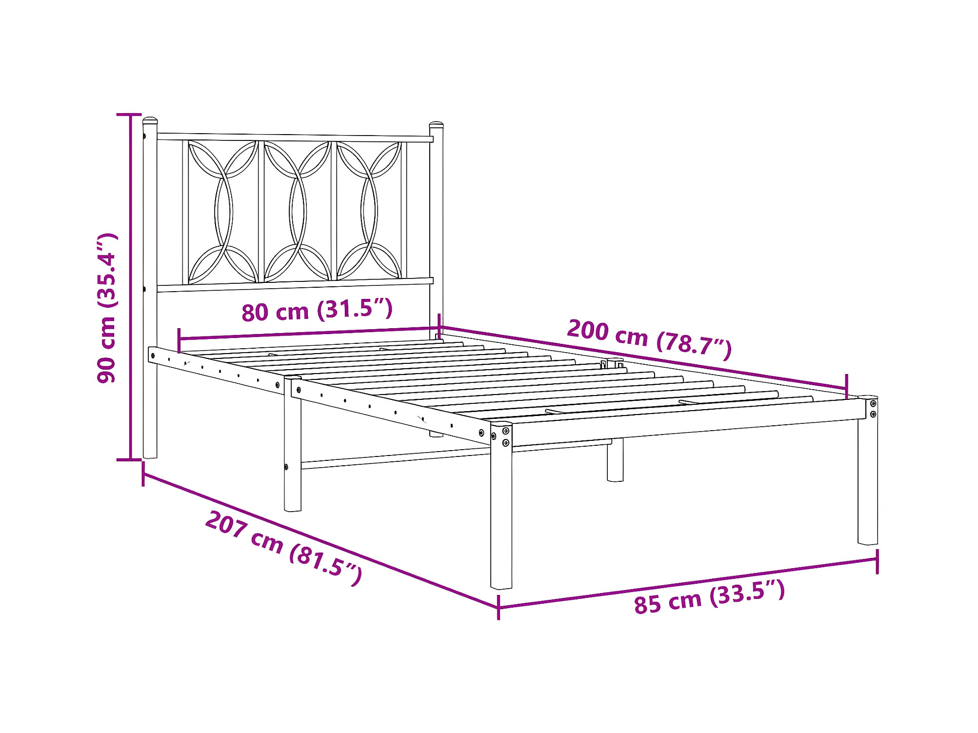 Cama com cabeceira e pés 80x200 cm metal preto PT684900