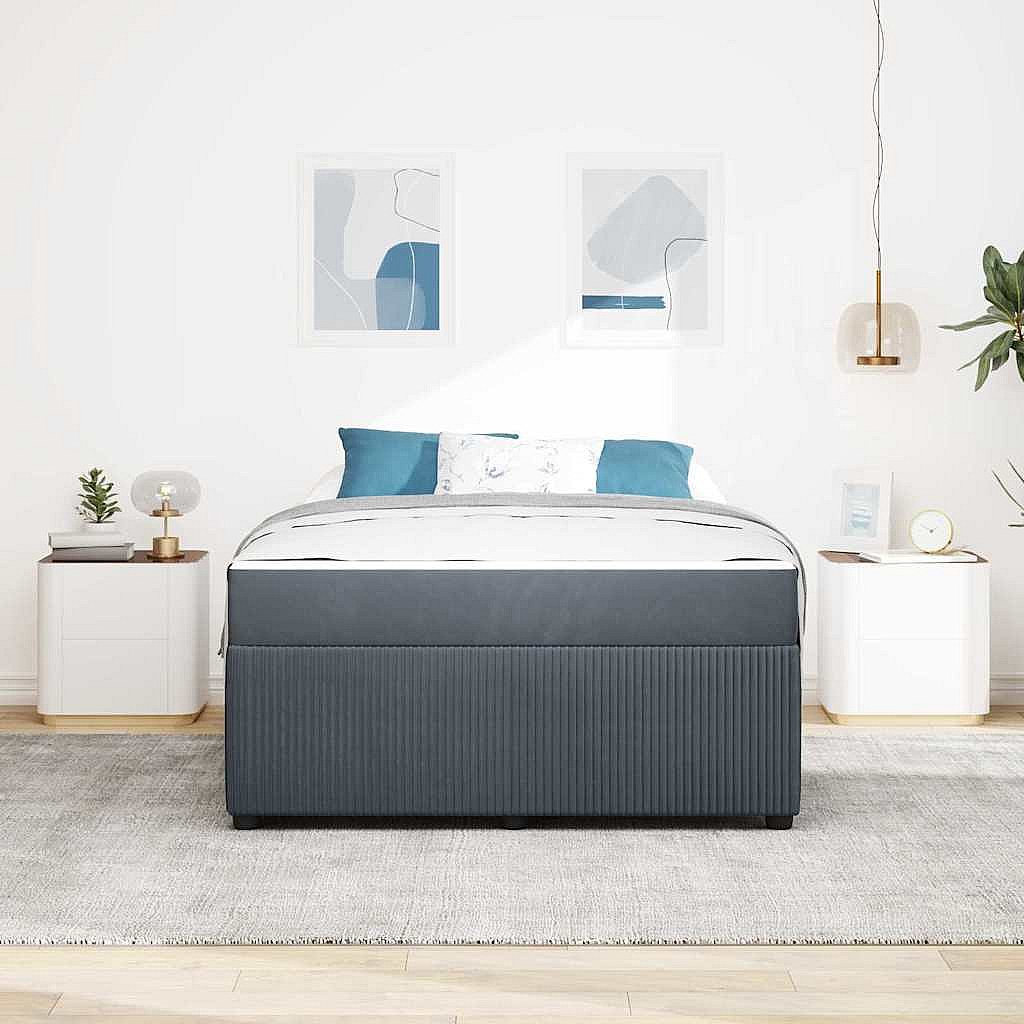 Cama com molas/colchão 160x200 cm veludo cinzento-escuro