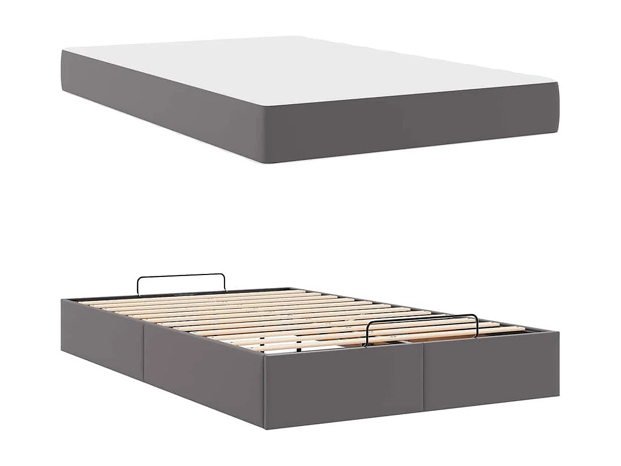Estrutura cama otomana colchão 120x200cm tecido cinzento escuro