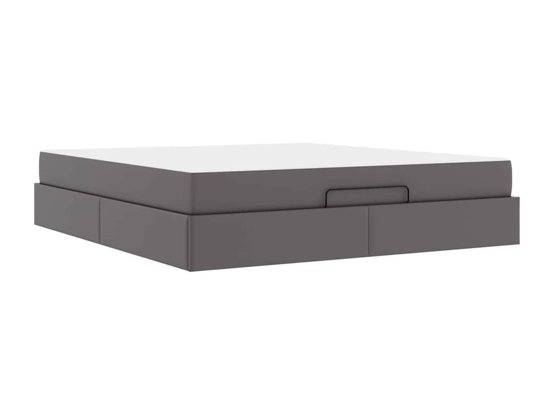 Estrutura de cama otomana com colchões tecido cinzento claro