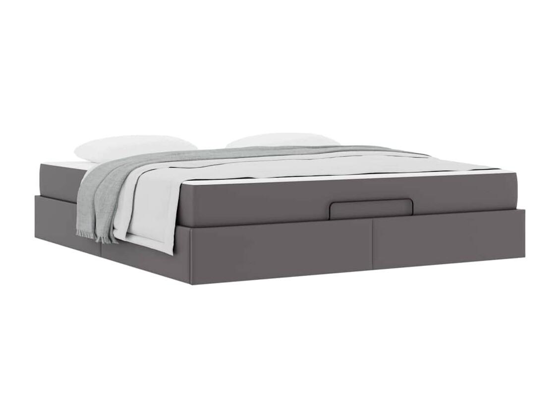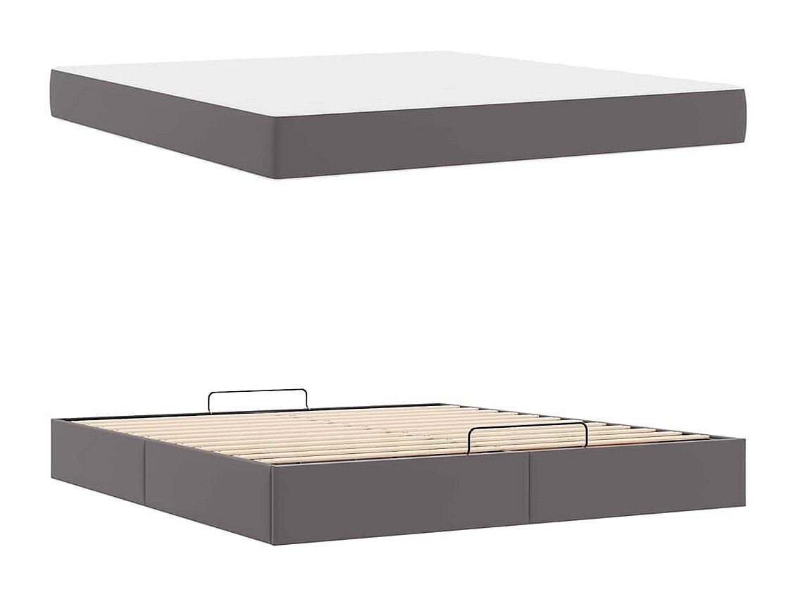 Estrutura de cama otomana com colchões tecido cinzento escuro