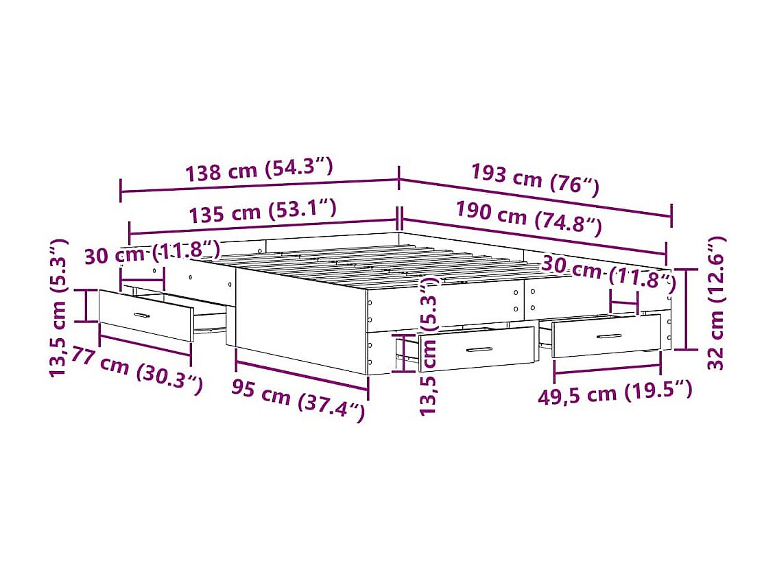 Estrutura de Cama com Gavetas Madeira antiga 135 x 190 cm