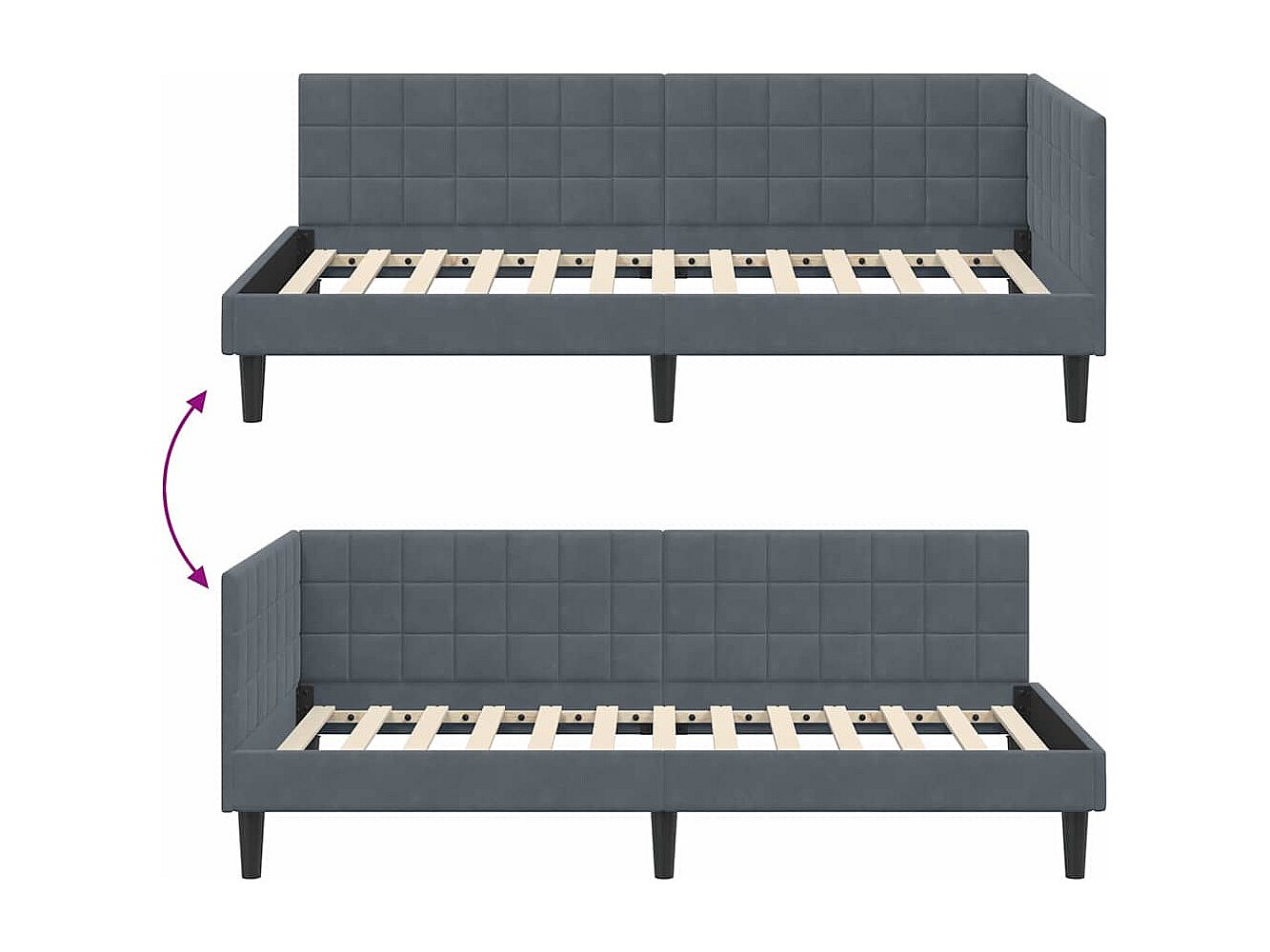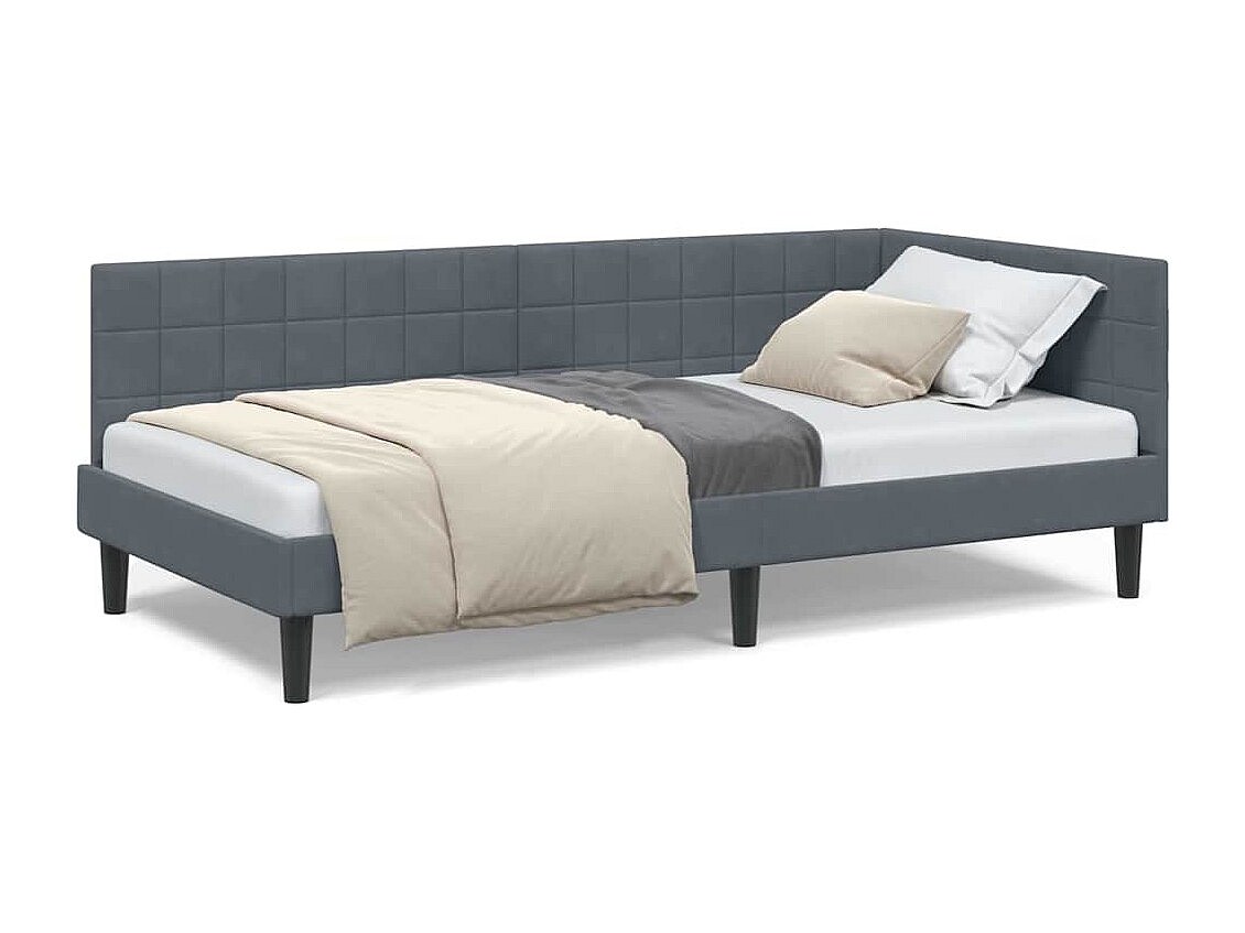 Estrutura de Cama de Canto Cinzento escuro 100 x 200 cm Veludo