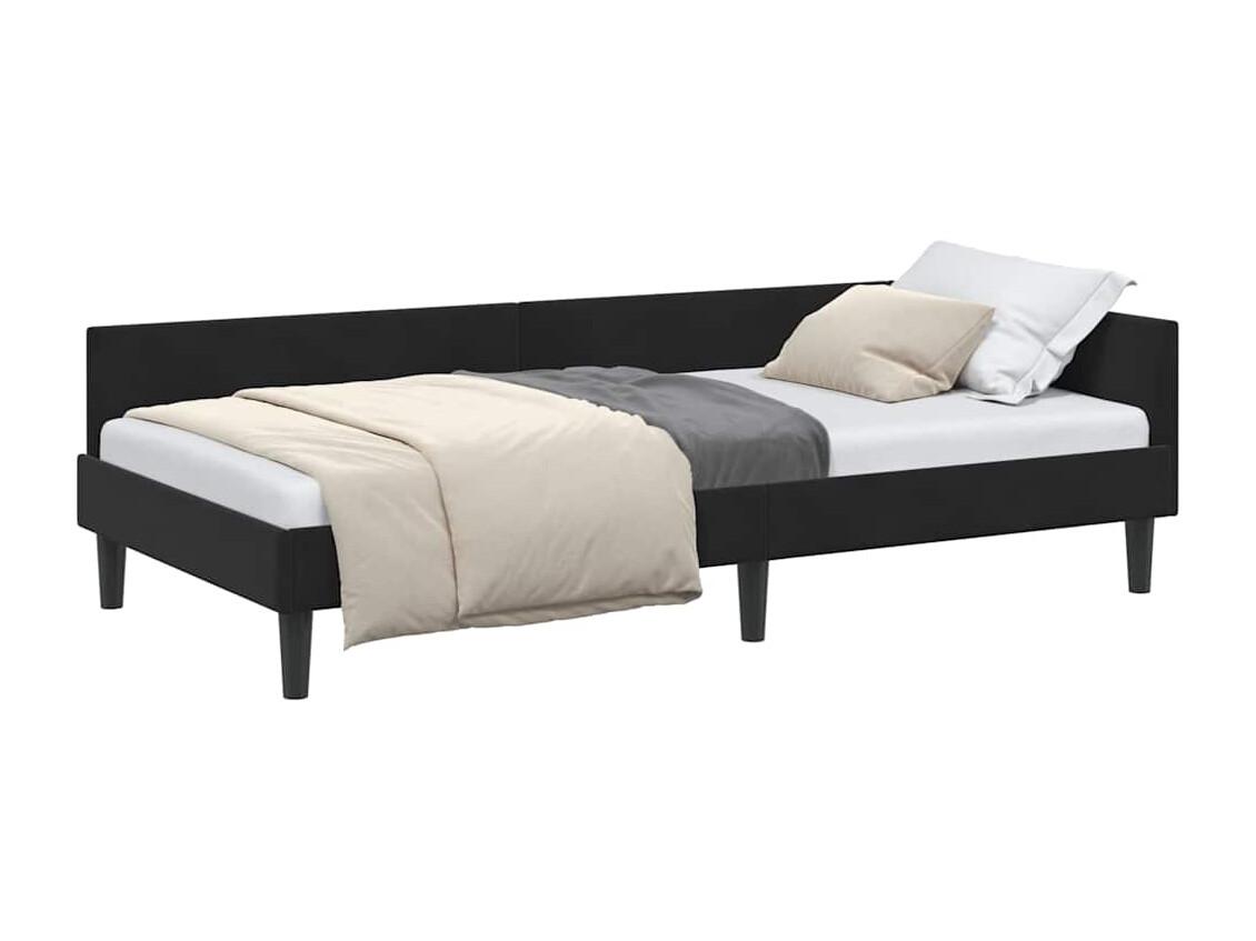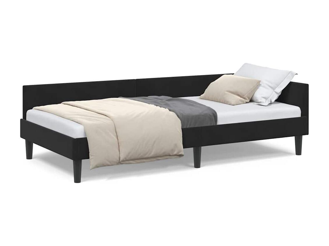 Estrutura de Cama de Canto Preto 100 x 200 cm tecido
